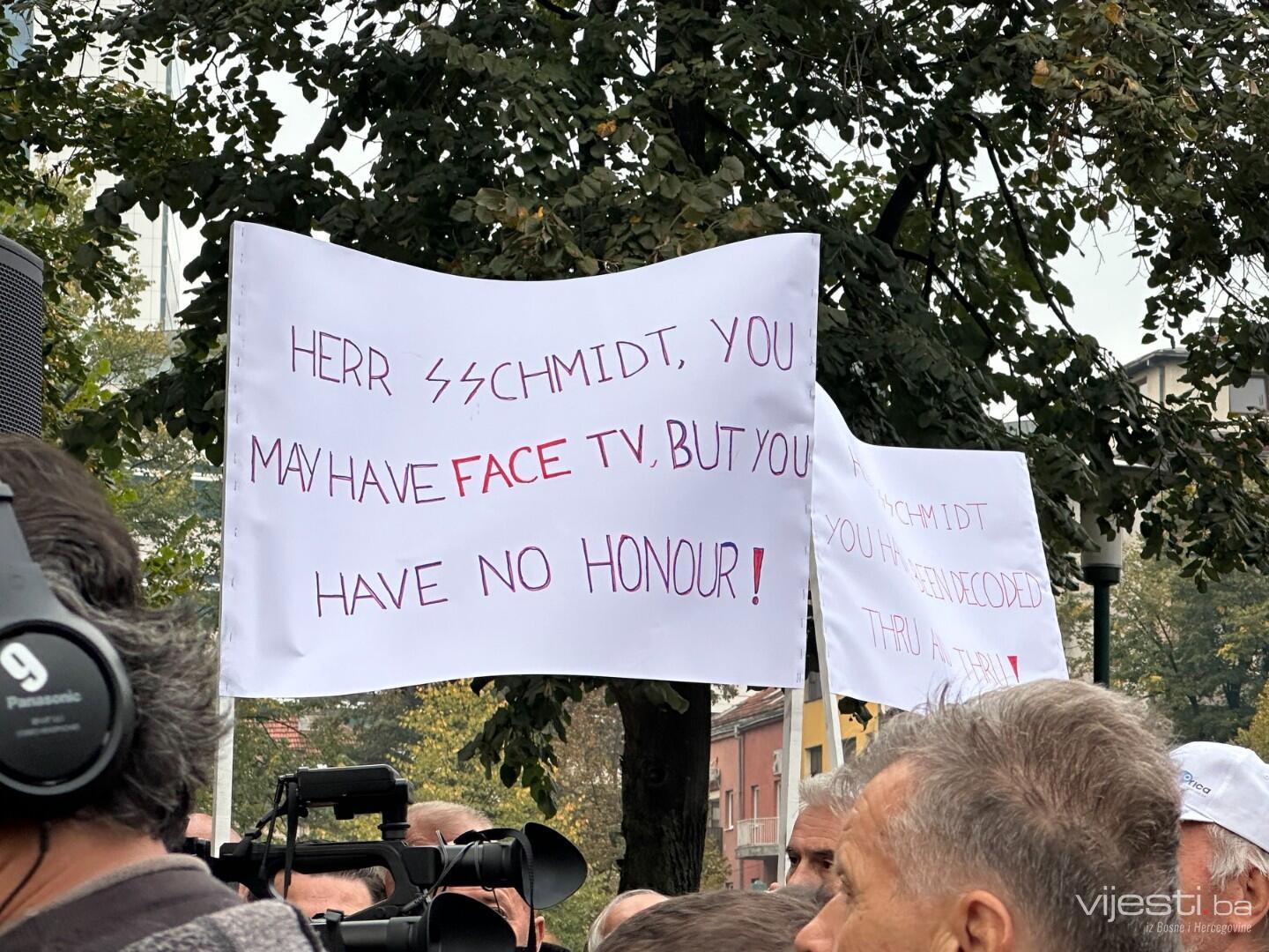 Kovačević je kazao i da je Schmidt jedini dosadašnji visoki predstavnik u BiH za čijeg mandata su se desile tri nevjerovatne pojave – najviše građanskih protesta ispred OHR-a, izuzetna pristranost i nastojanje za zaštitu sistema nastalog na genocidu te je, po Kovačevićevim daljnjim navodima, Schmidt uspio srozati ugled internacionalne zajednice.