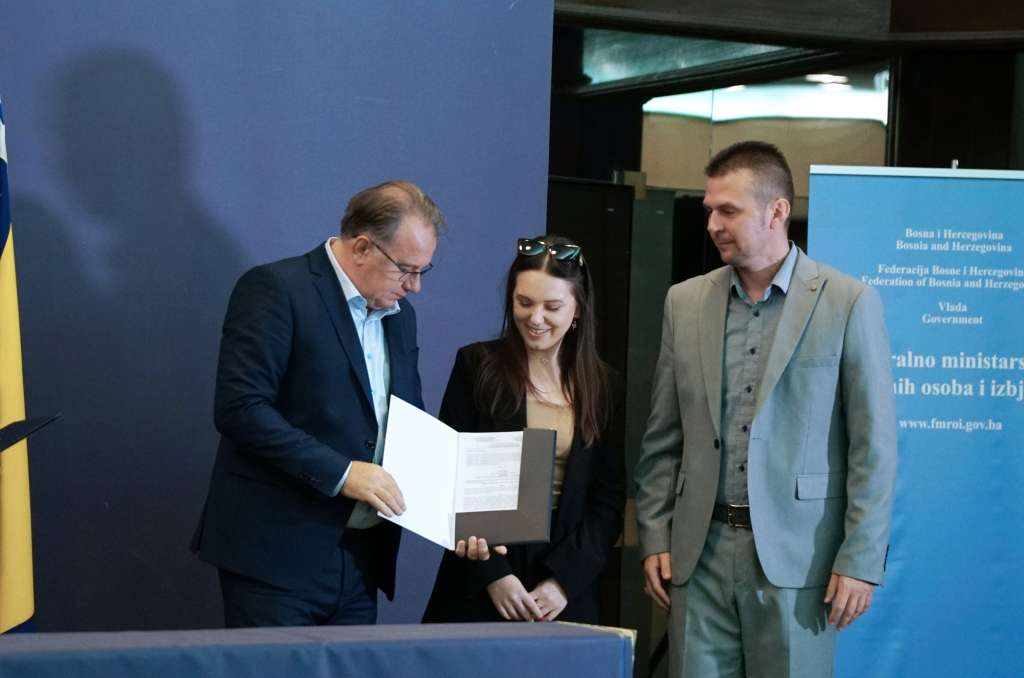 - Ove godine ćemo poslodavcima dodijeliti 2.000 KM po zaposlenom povratniku. Osiguravamo i sredstva za jedinice lokalne samouprave, javna preduzeća i javne ustanove koje zaposle povratnike na neodređeno radno vrijeme, a mi na godinu dana subvencioniramo 70 posto bruto plate za svakog zaposlenog povratnika. Dodatno, bodujemo projekte za infrastrukturu iz sredina koje zapošljavaju povratnike u skladu sa ustavnom obavezom u okviru Općeg okvirnog sporazuma za mir u BiH. Dakle, nudimo sistemsku podršku poslodavcima i radnicima povratnicima i očekujemo nastavak pozitivnog odgovora na ovakve projekte Vlade FBiH putem resornog Ministarstva – izjavio je Dizdar, povodom potpisivanja današnjih ugovora.