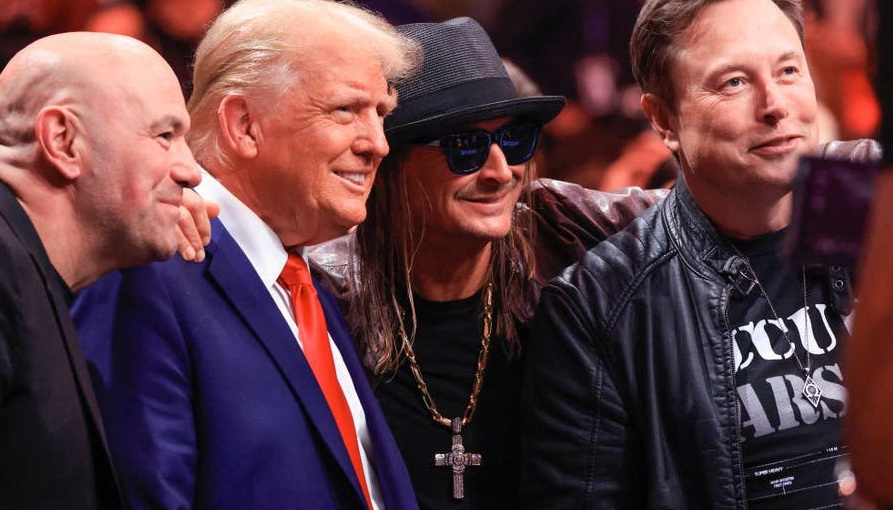 Dok je Trump šetao arenom, kamere su ga snimile kako se druži i razgovara sa poznatim ličnostima i poznatim učesnicima kao što su pjevač-reper Jelly Roll, Kid Rock, Donald Trump Jr., Eric Trump i drugi.
