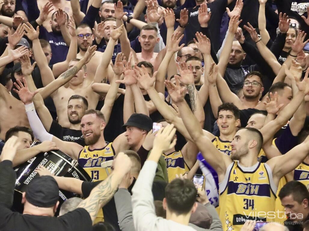 Nakon trijumfa su naši košarkaši proslavili sa cijelom dvoranom, družili se sa najvatrenijim navijačima BHFanaticosima, ali i sa svima ostalima u dupke punoj dvorani “Mirza Delibašić”.