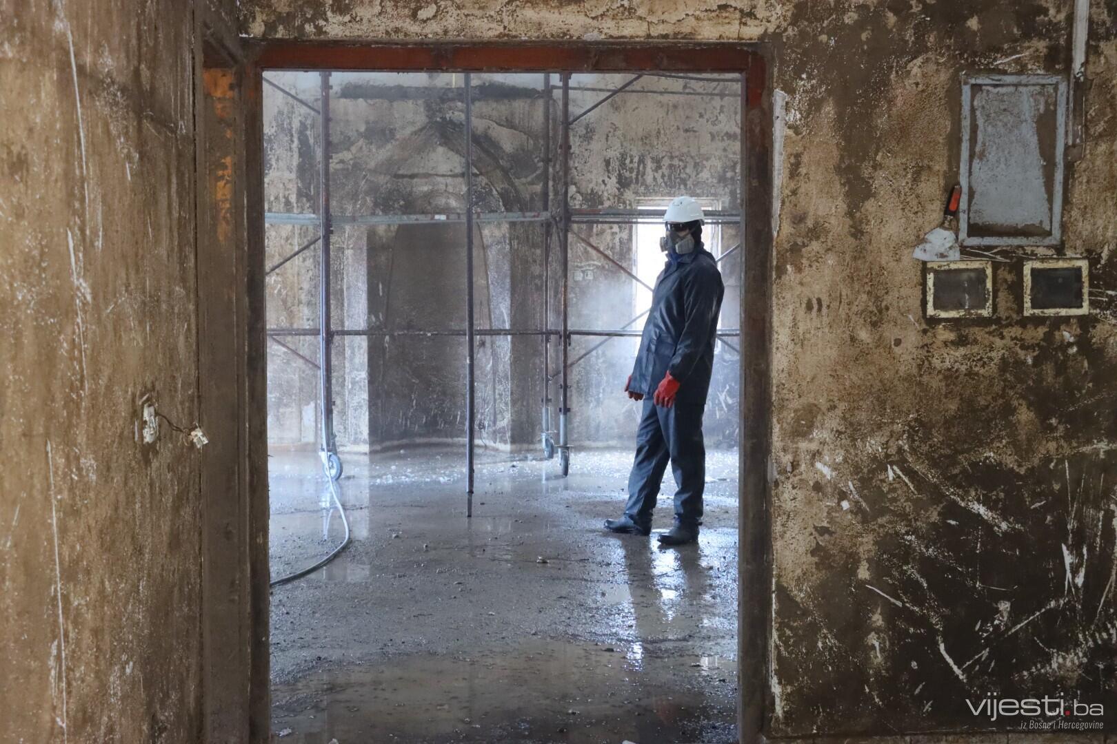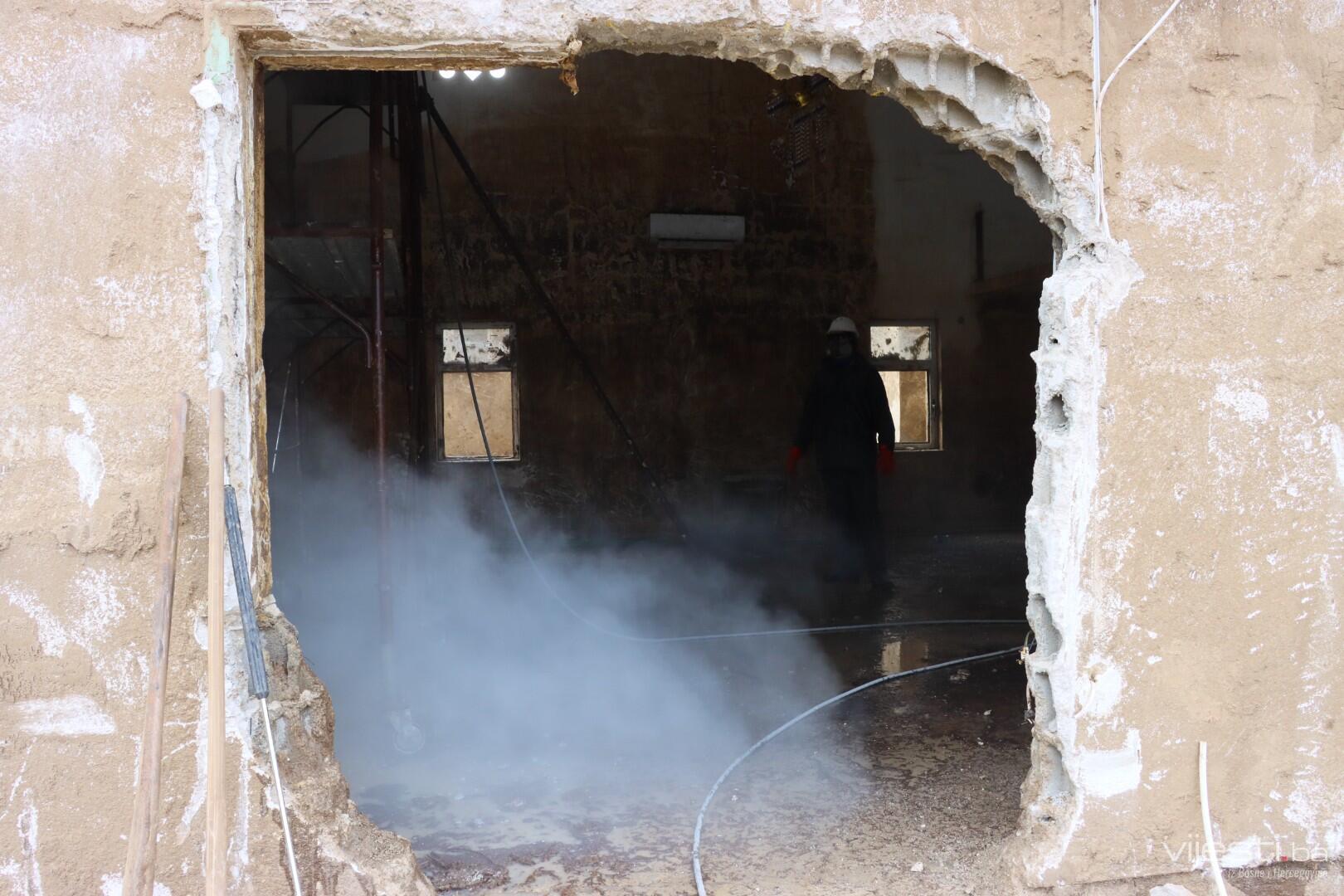 No u jednom kutku naselja ipak se radi, ali sa nešto lakšim mašinama. Onim za čišćenje zidova, u ovom slučaju džamijskih.