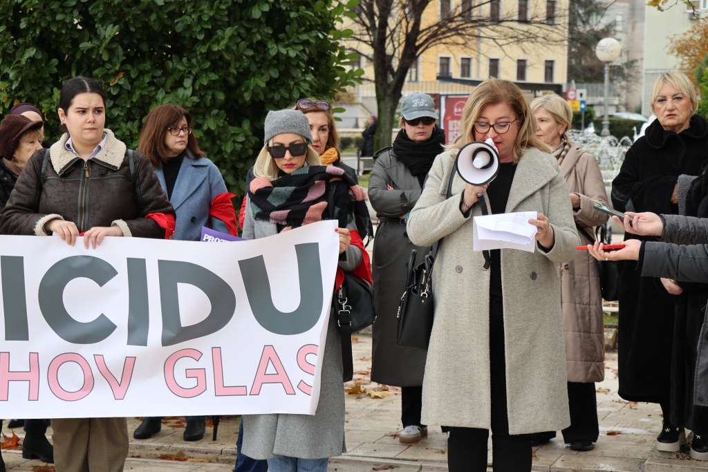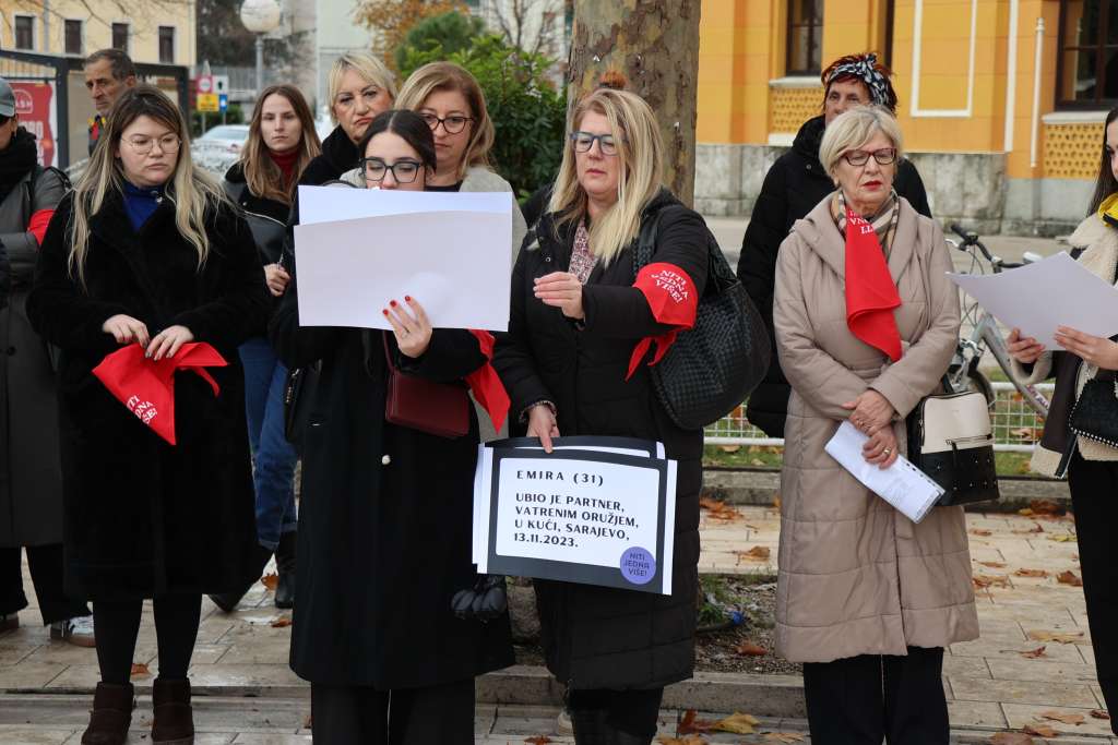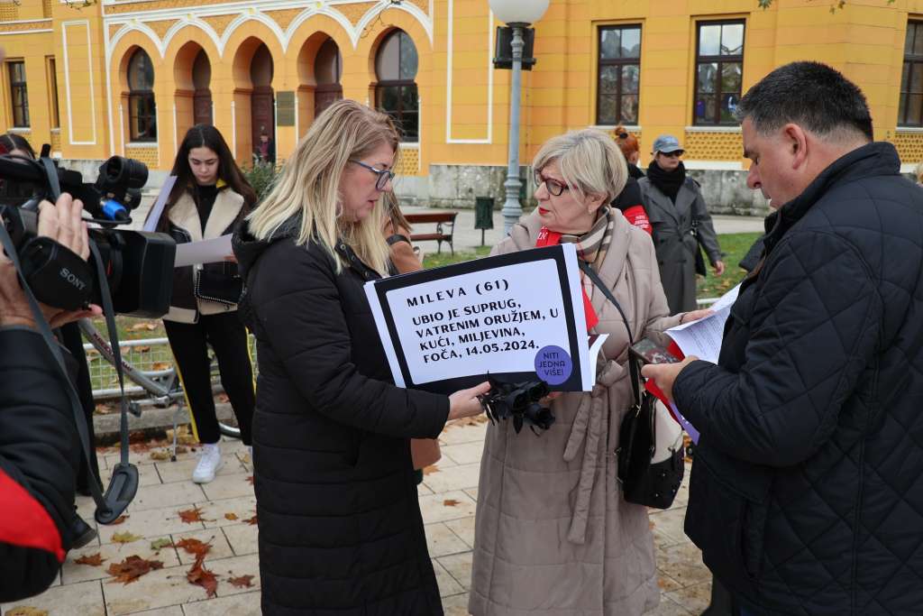 S protesta je poručeno kako odgovorne institucije još uvijek nisu učinile dovoljno da pooštre kaznenu politiku niti da osiguraju primjenu neophodnih mjera zaštite kako bi se smanjio rizik ponovnog izlaganja žrtava nasilju, odnosno spriječilo ono najgore, da budu brutalno ubijene.