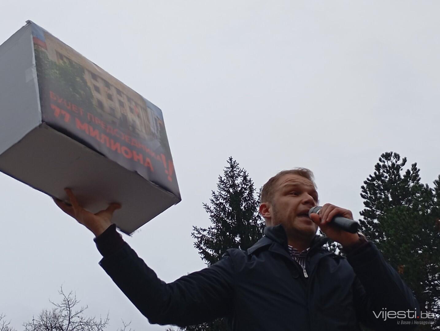 Stanivuković na novom protestuStanivuković: Ima 100 miliona za kumovu zgradu, a traži od grsdova novac