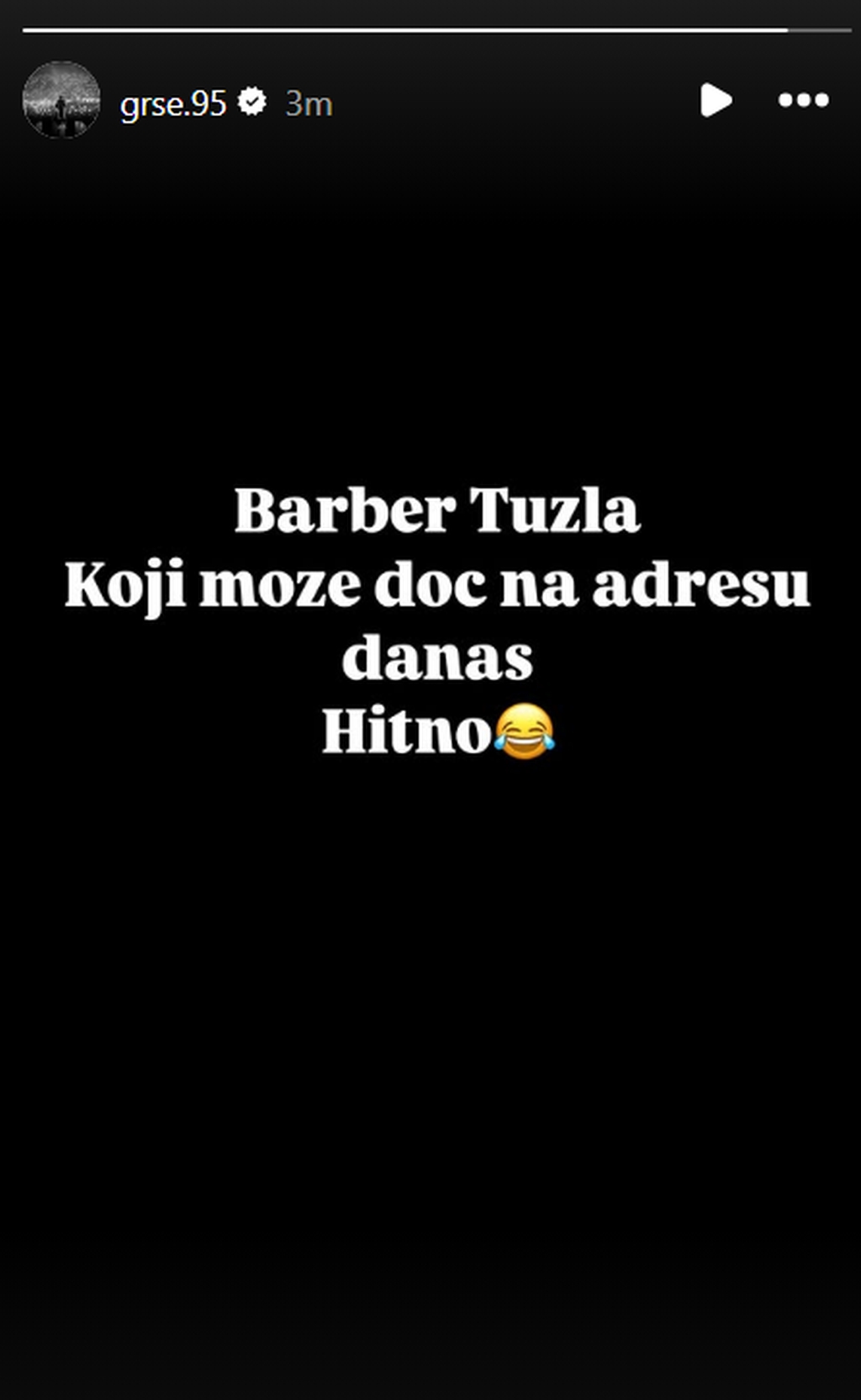 "Barber Tuzla koji može doći na adresu danas. Hitno", objavio je na svom Instagram storyju reper iz Splita.