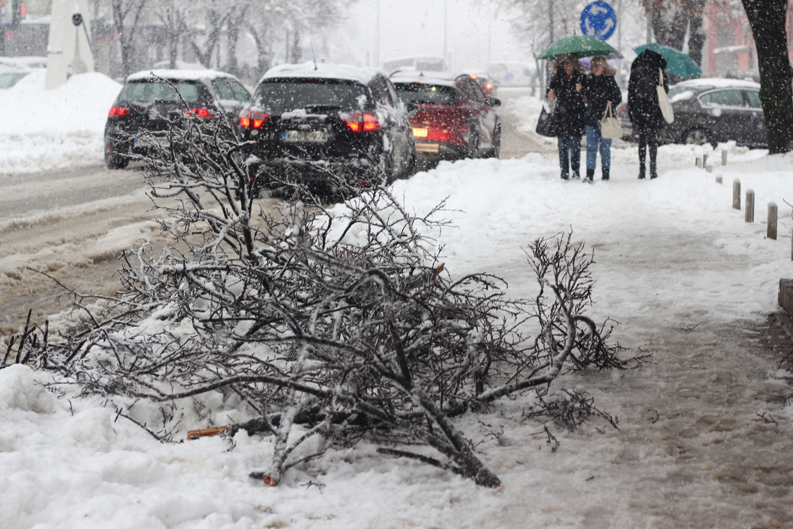 Osim toga, u blizini Ekonomskog fakulteta drvo je palo na automobil, što je dodatno usporilo saobraćaj u gradu.