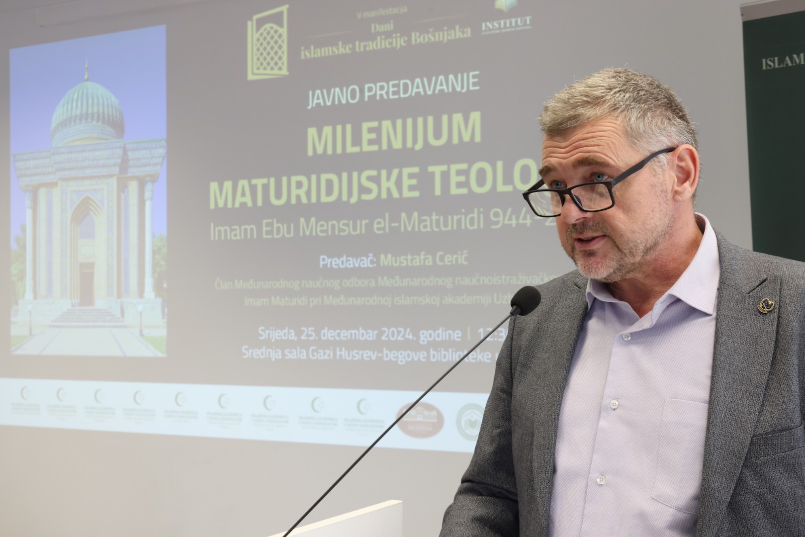 Današnje predavanje je održano u Gazi Husrev-begovoj biblioteci, a predavač je bio Mustafa Cerić, član Medunarodnog naučnog odbora Međunarodnog naučno-istraživačkog centra Imam Maturidi pri Međunarodnoj islamskoj akademiji Uzbekistana.
