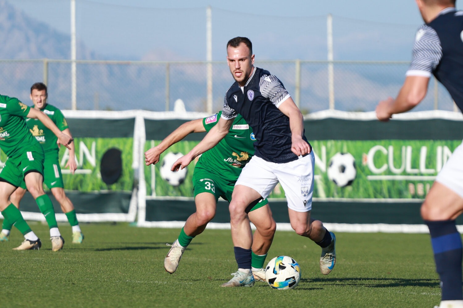 Željo je smanjio u 28. minuti. Radovac je poslao pas, Krpić propustio, Dangubić gurnuo za Cvetanoskog koji iskosa sjajno šutira i pogađa mrežu Ukrajinaca. U 32. minuti Muftić odlično brani udarac iskosa.