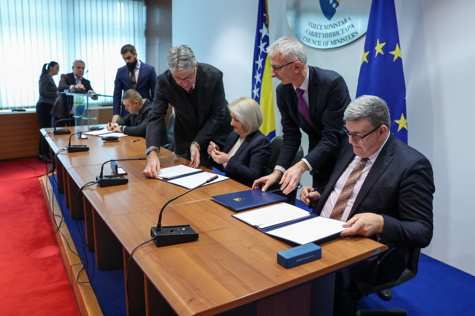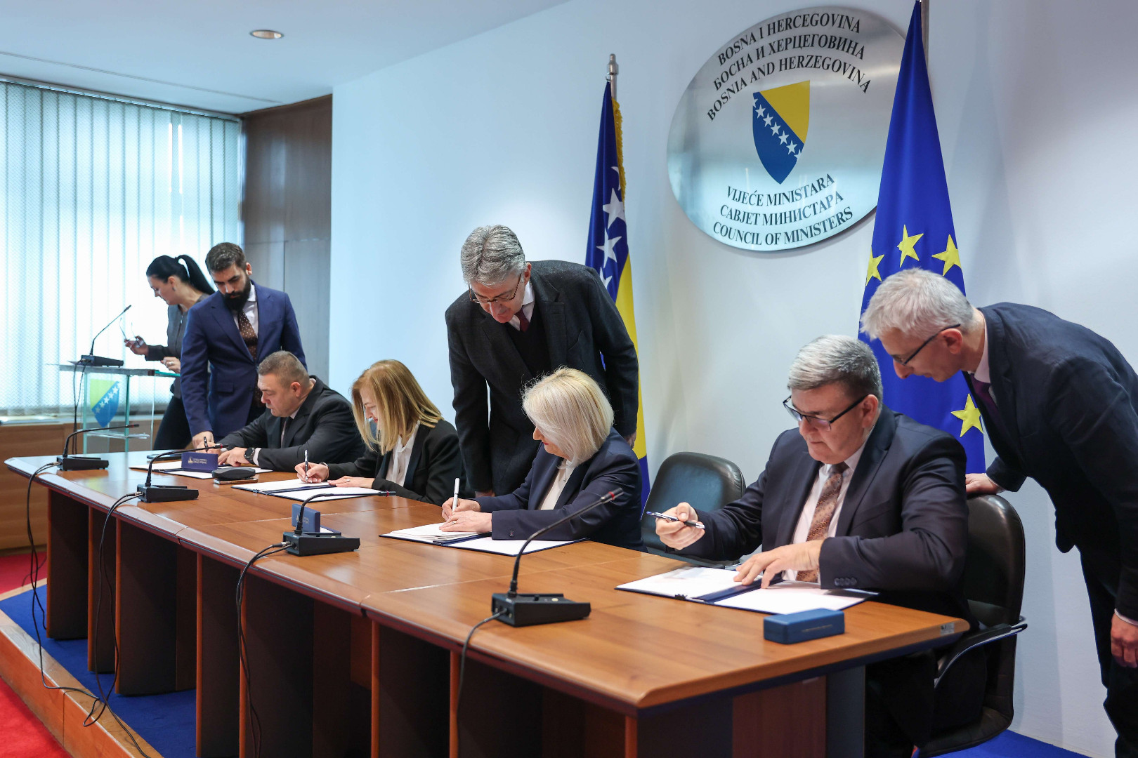 Uime zaposlenih u institucijama BiH, kolektivni ugovor potpisali su predsjednik Sindikata državnih službenika i zaposlenika u institucijama BiH Radenko Mirković, predsjednik Saveza sindikata policijskih organa BiH Dragan Krvavac i predsjednica Sindikata Uprave za indirektno oporezivanje BiH Ana Mrnjavac.