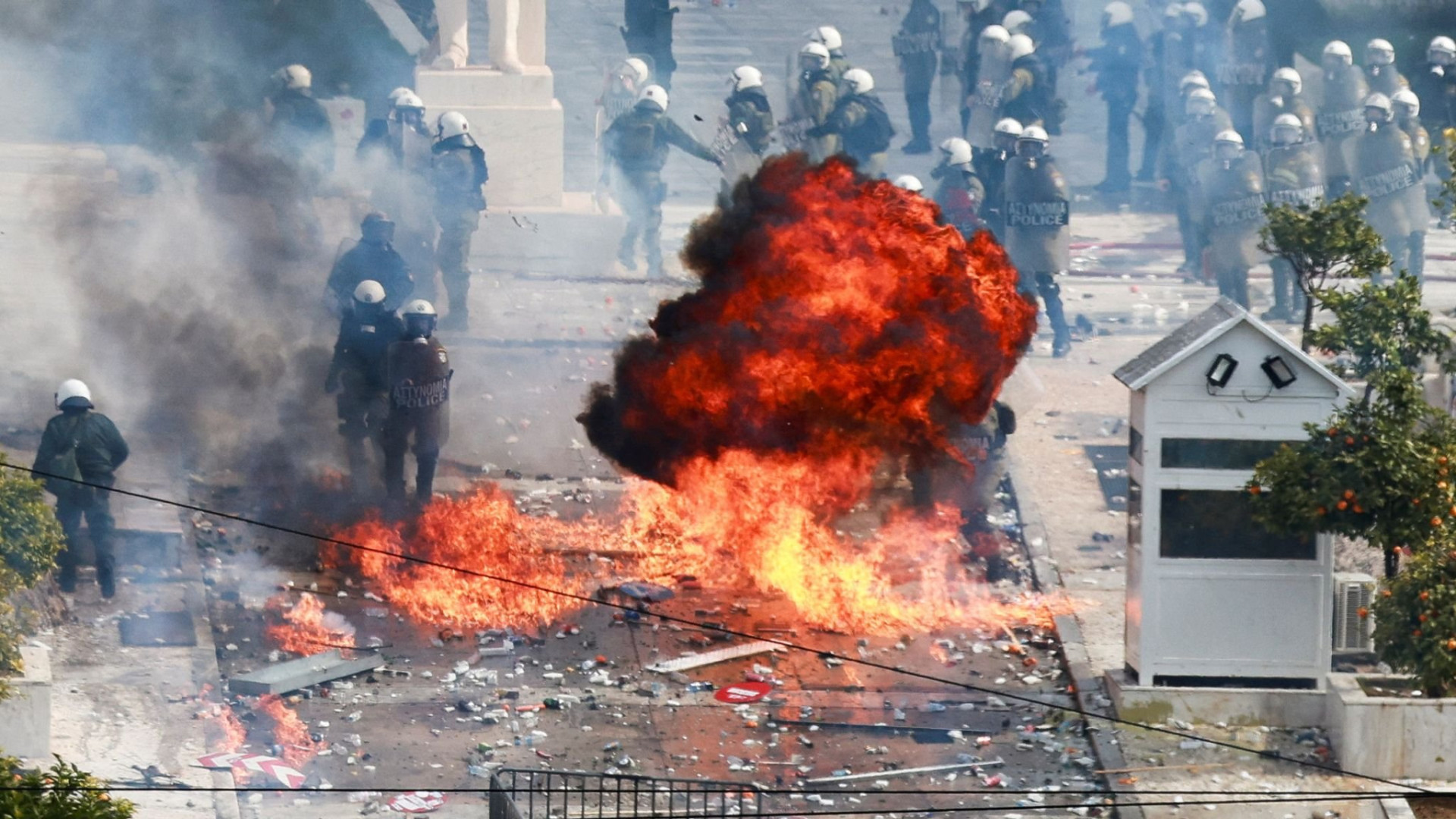 Detonacije suzavca koje su ispalile interventne snage policije odjekivale su centrom grada. Prije toga veliki broj protestanata okupio se na centralnom Trgu Sintagma ispred parlamenta, vičući "ubice" i optužujući državu za odgovornost za tragediju.