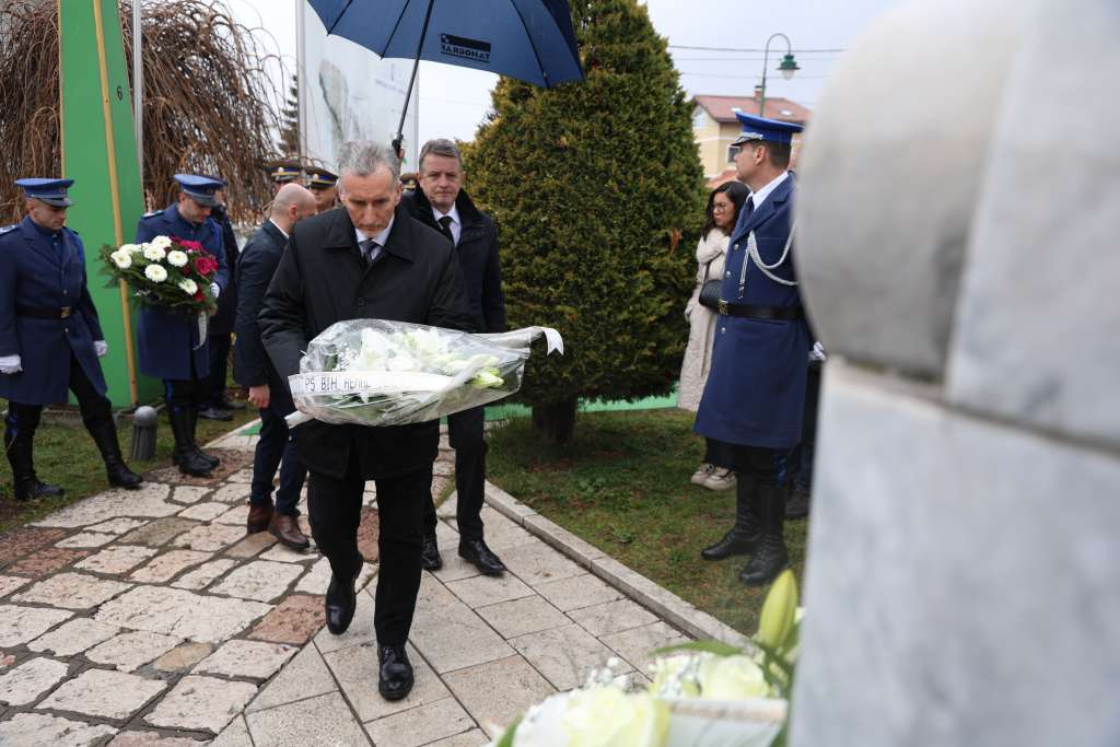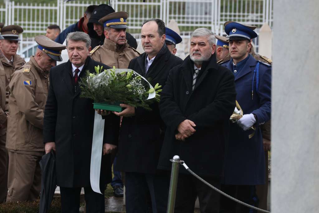 Cvijeće su položili članovi Predsjedništva BiH Denis Bećirović i Željko Komšić, te delegacije svih nivoa vlasti.