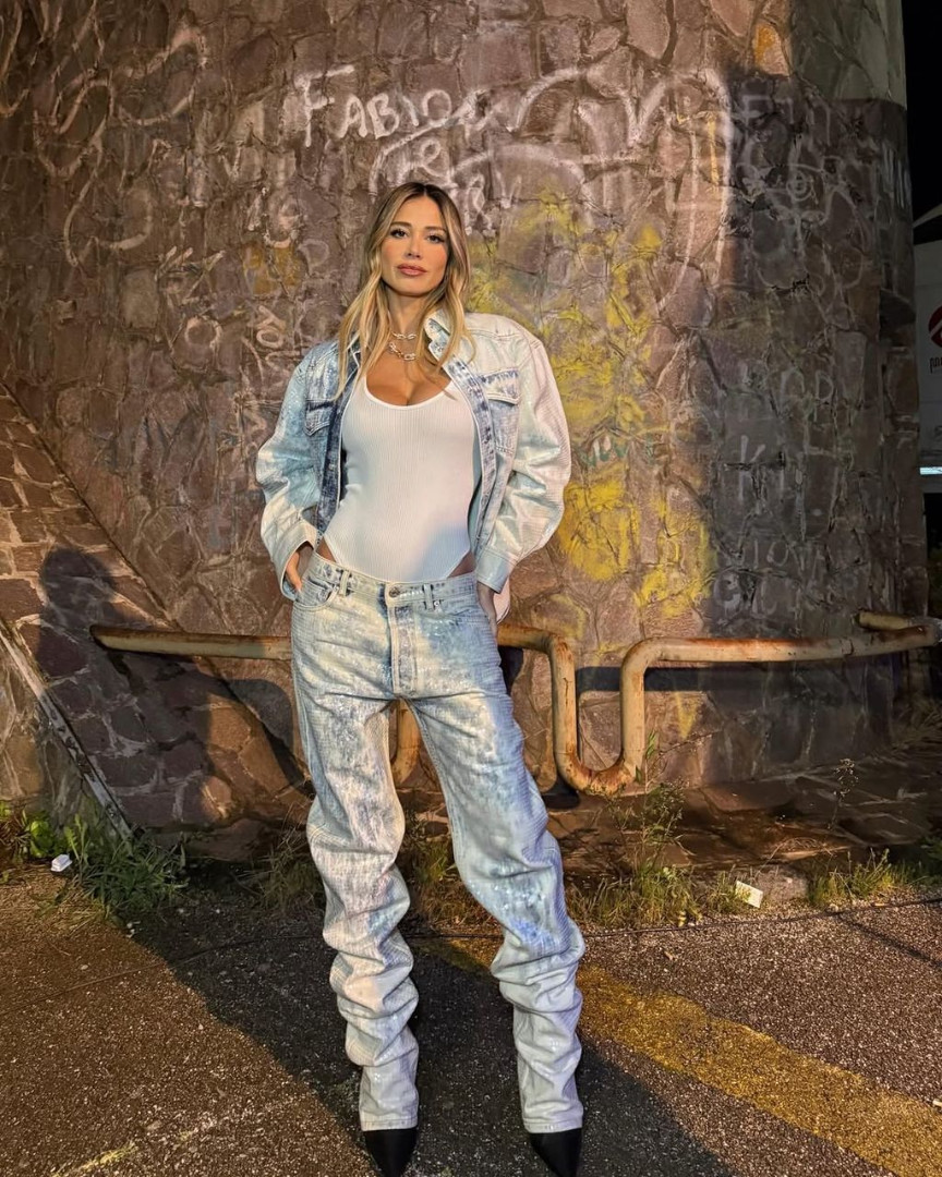 Naime, Diletta je pozirala u bijelom bodyju istaknutog dekoltea, širokim trapricama i teksas jakni, a cijeli outfit upotpunila je crnim cipelama i zlatnim nakitom.