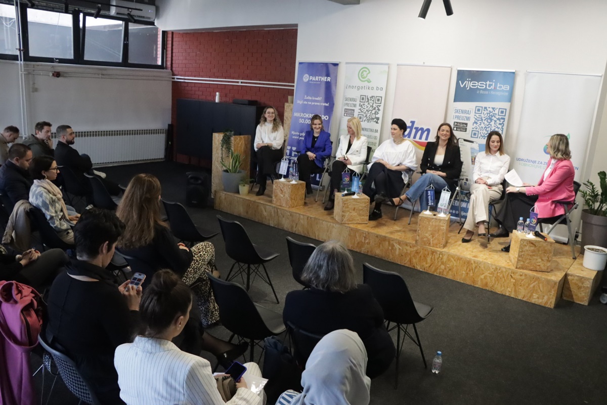 Panelistice su bile Dženisa Delalić, project manager Udruženja poslovnih žena BiH, Irma Sokolović, mr.sci.ing.elektrotehnike, Maja Halilović, biodizajnerica, Hadiđe Šehić, magistar mašinstva, Elma Berbić, magistar mašinstva, srebrna značka UNSA i Zerina Kukić, magistar hemije,