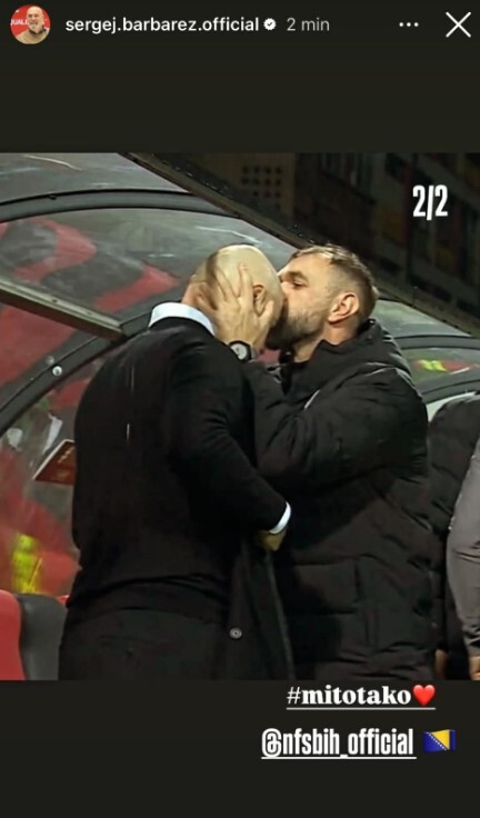 To se najbolje može vidjeti iz scene koja je zabilježena tokom utakmice kada je Mirko Hrgović poljubio u čelo Sergeja Barbareza, svog nekadašnjeg saigrača i kapitena, a sada kolegu iz stručnog štaba.