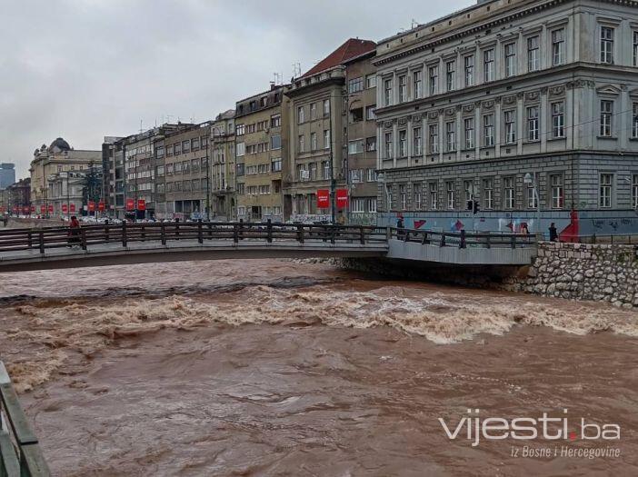 Miljacka je porasla nekoliko metara iznad normalne granice, dok su se rijeke Bosna u Rajlovcu i Željeznica na Ilidži na nekim mjestima već izlile iz korita.