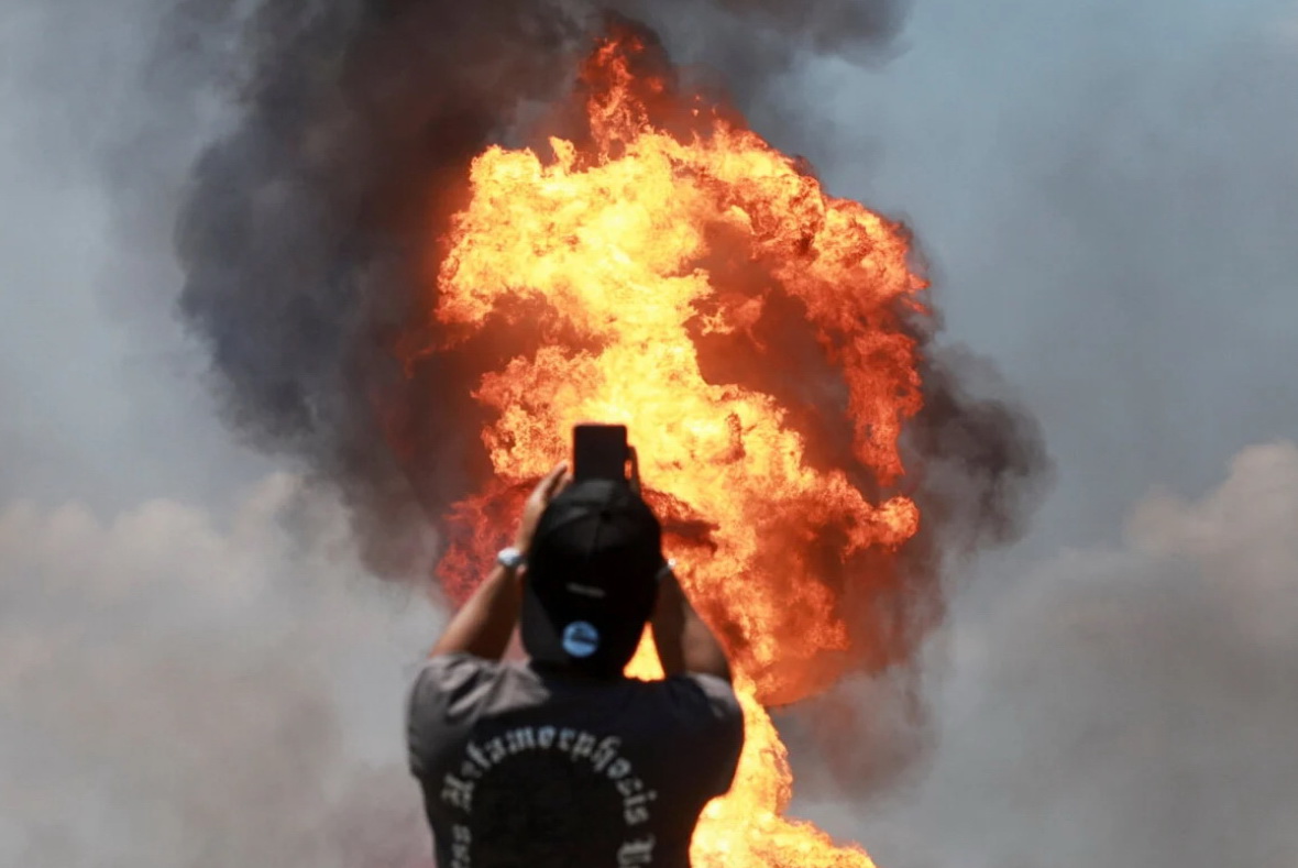 Slike koje su prenijeli mediji i snimke na društvenim mrežama pokazuju ogroman požar i narandžasti plamen na horizontu iz kojeg izbija dim.