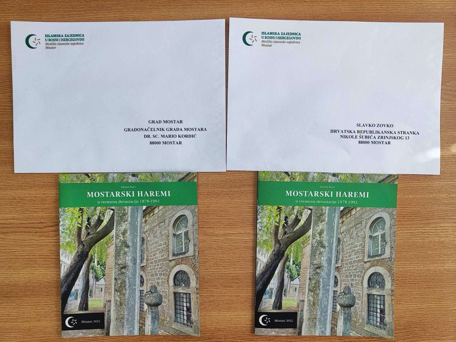 Nakon medijskih istupa o karakteru harema Kantarevac glavni imam Medžlisa Islamske zajednice Mostar mr. Dino-ef. Maksumić danas je gradonačelniku Mostara Mariju Kordiću i vijećniku HRS-a u Gradskom vijeću Slavku Zovki poslao katalog „Mostarski haremi u vremenu devastacije 1878.-1992“.