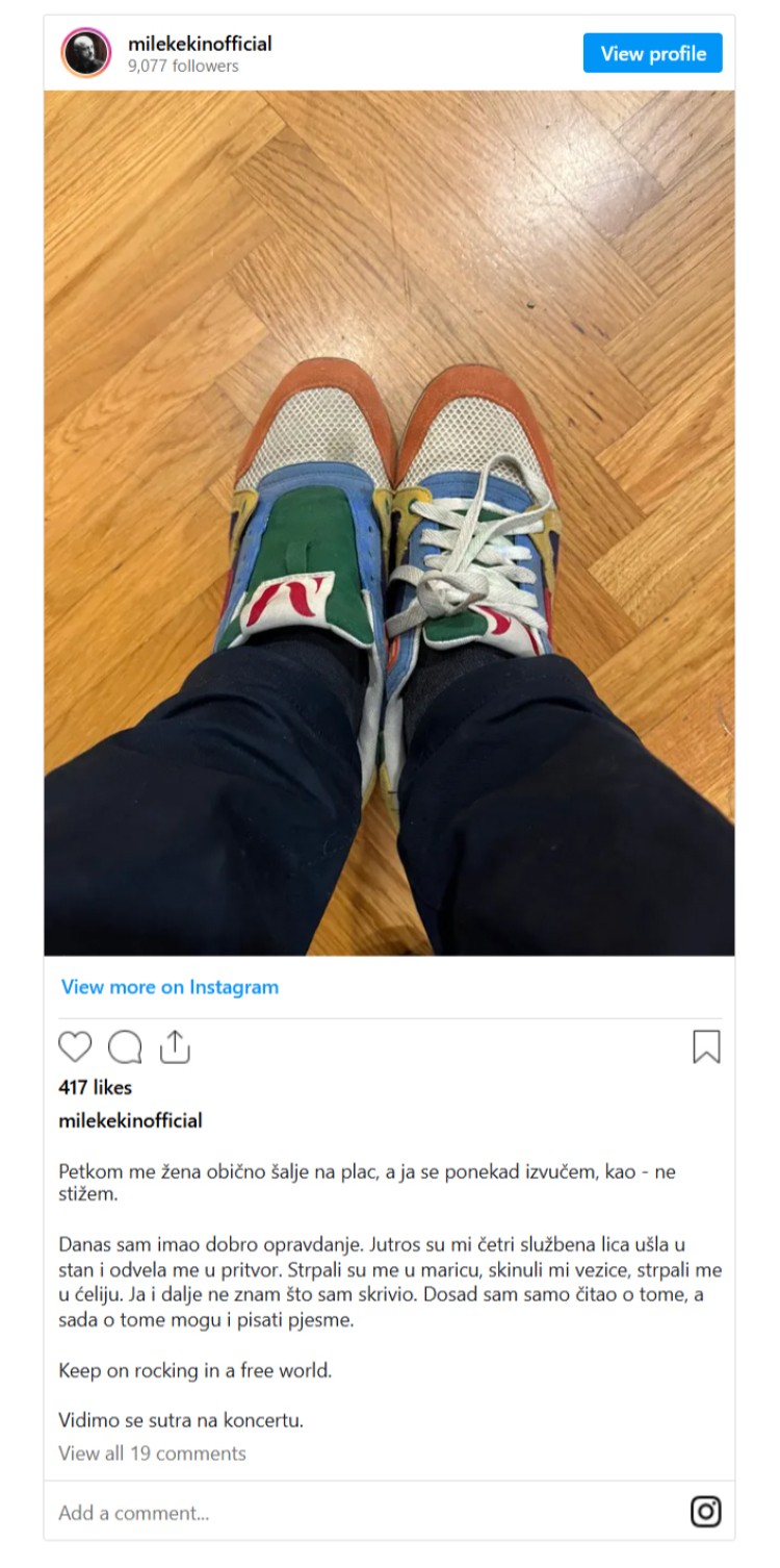 Nedugo nakon toga oglasio se i na društvenim mrežama, gdje je objavio fotografiju patika pri čemu s jedne nedostaju pertle i kratku poruku koju prenosimo u cijelosti: