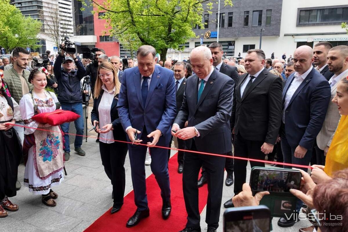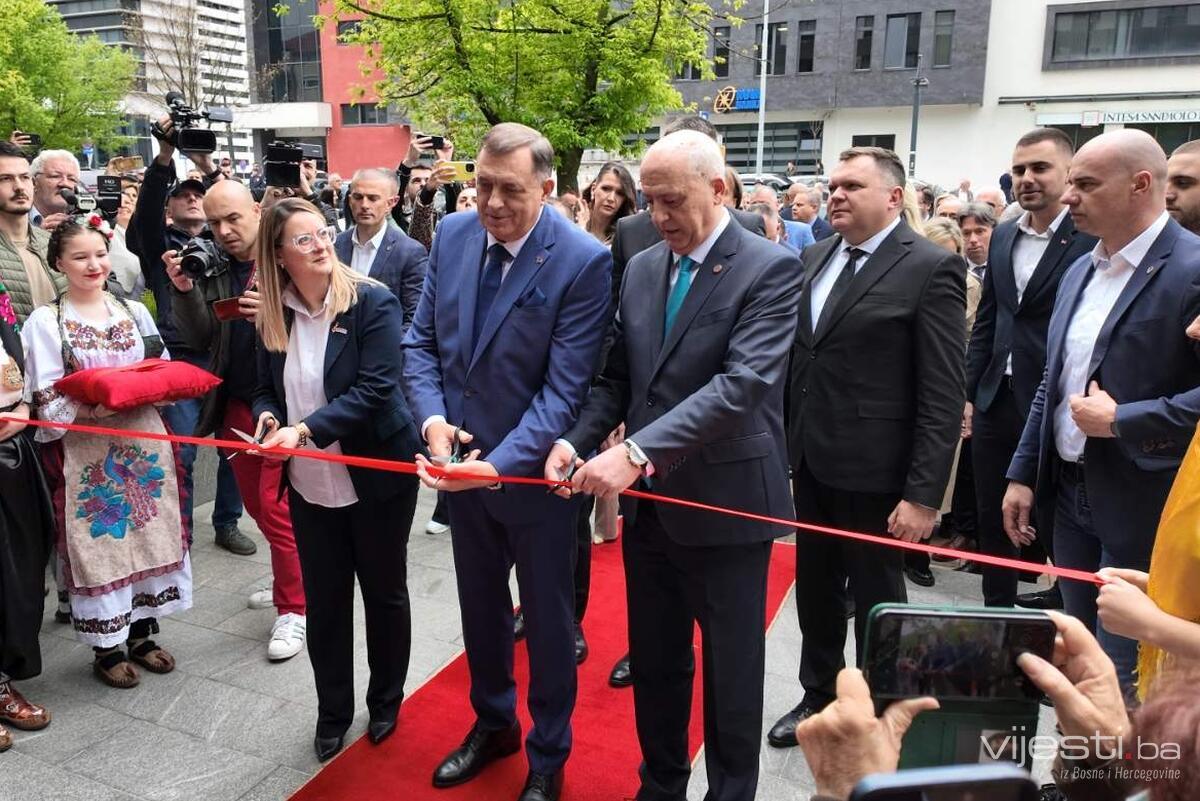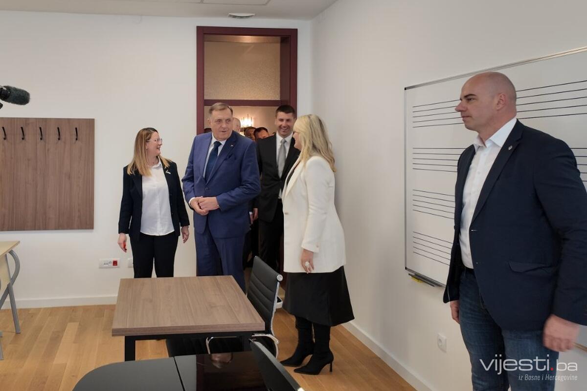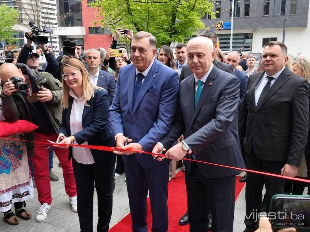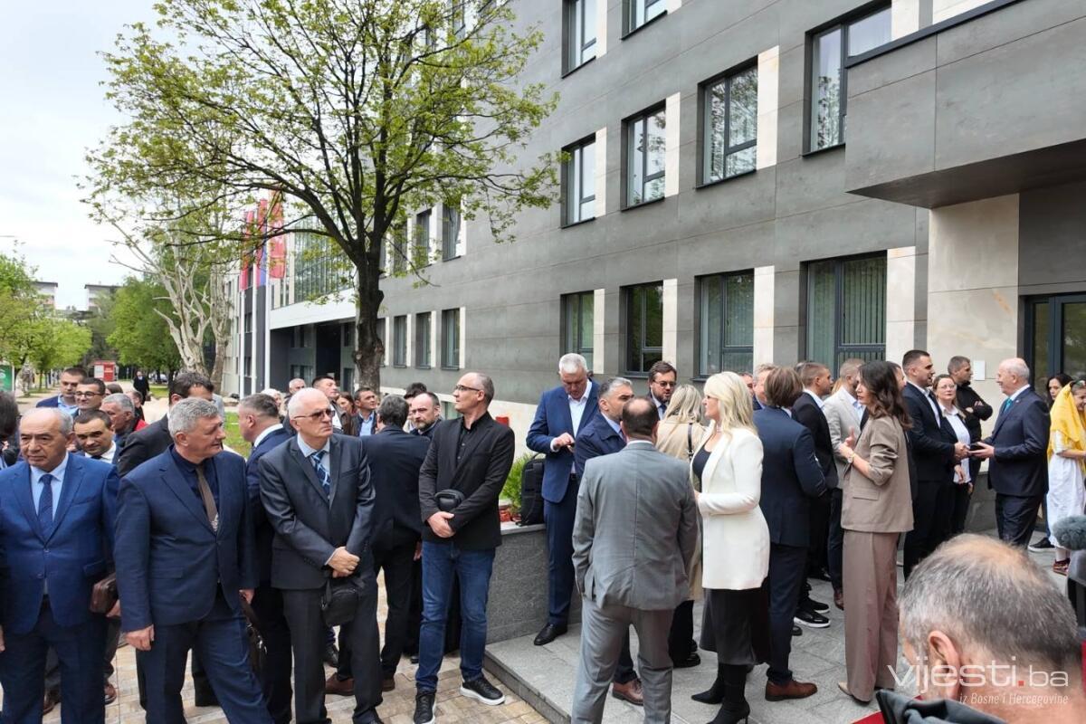 Dodik je, kako je i najavo protokolom, na planirano mjesto stigao u 12 sati. Nakon otvaranja zgrade planirane su izjave za medije.