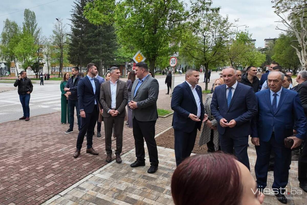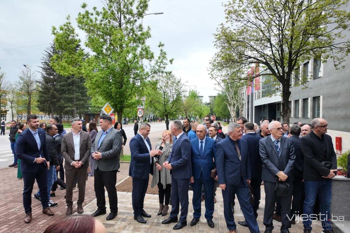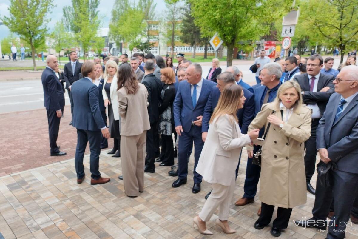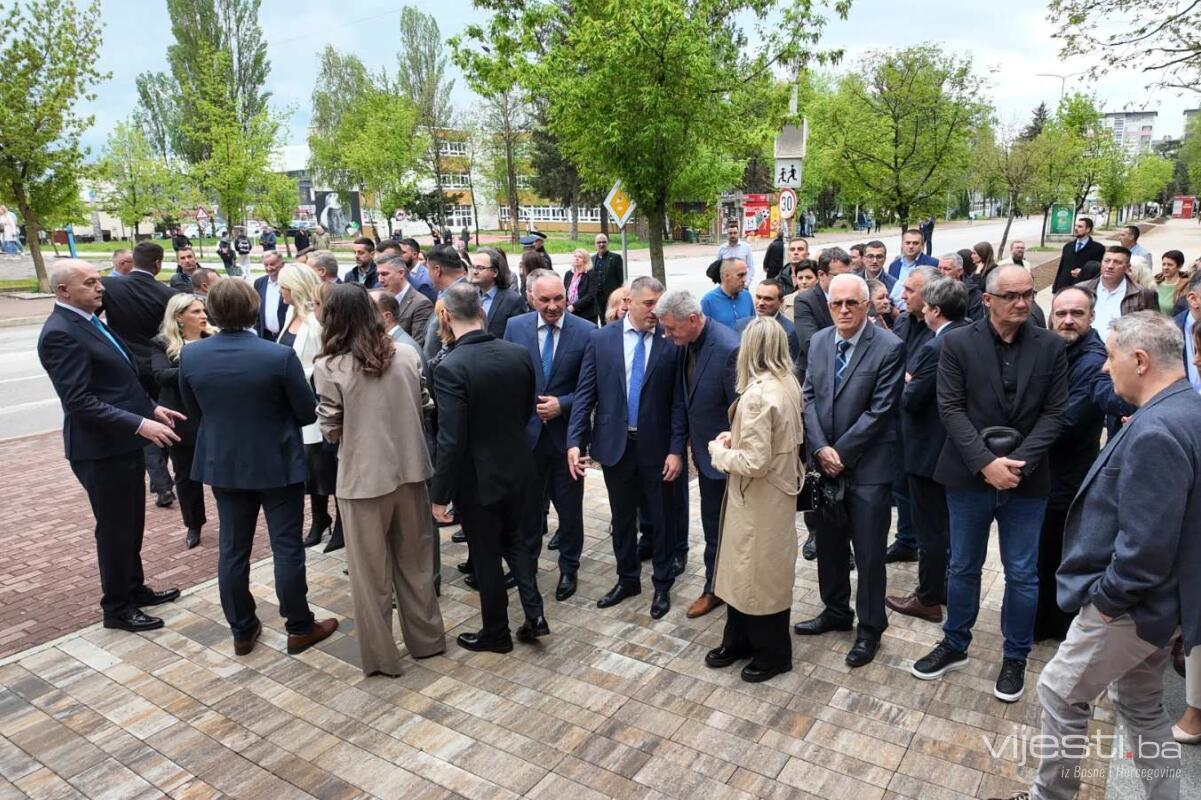 Dodik je, kako je i najavo protokolom, na planirano mjesto stigao u 12 sati. Nakon otvaranja zgrade planirane su izjave za medije.