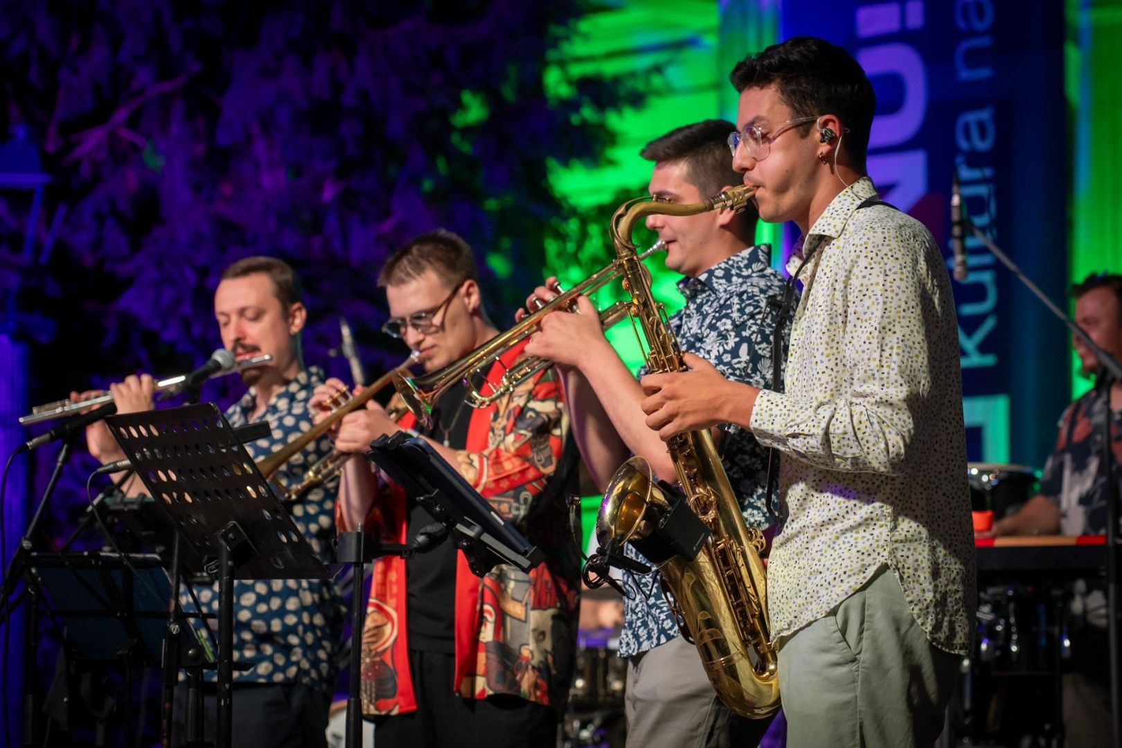 Dino Mangafić (lead guitar), Ammar Hadžimujić (Keys) i Mirza Sijerčić (Saxophone), uz ostatak postave koji čine mladi talentirani muzičari Benjamin Drijenčić (trumpet), Jasmin Avdagić (percussion), Almir Nezić (Bass Guitar), Boris Sikuljak (Drums), Nenad Tešić (Keys, Piano/Rhodes), Benin Mujkić (Trumpet) i Narcis Zečić (Flute) ljubiteljima jazz muzike predstavili su autorske pjesme te obrade poznatih pop/funk numera u autentičnim aranžmanima.