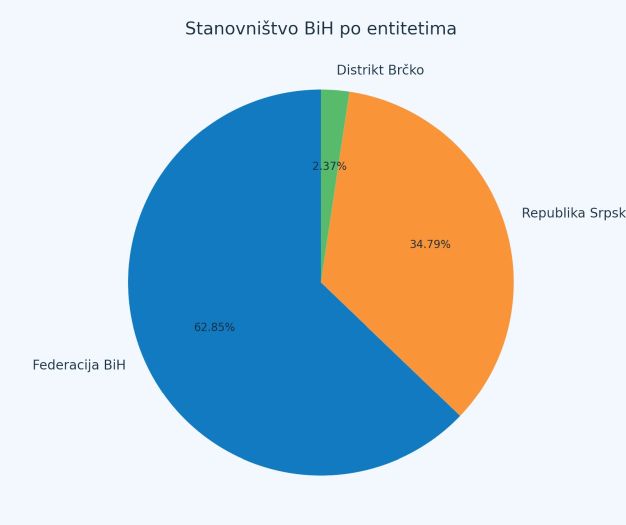 Prema tim podacima, u BiH je evidentirano 3.531.159 stalnih stanovnika. Od toga, u entitetu Federacija BiH - 2.219.220 stanovnika (62,85 posto), u entitetu Republika Srpska - 1.228.423 stanovnika (34,79 posto) te u Distriktu Brčko 83.516 stanovnika (2,37 posto).