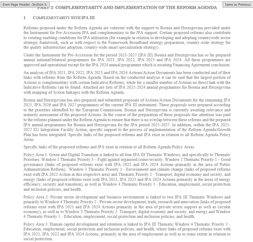 Dokument sa 114 mjera na koje su se vlasti obavezale, ključan je za povlačenje sredstava, a isplate će biti uslovljene provođenjem tih mjera.