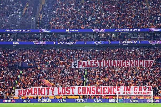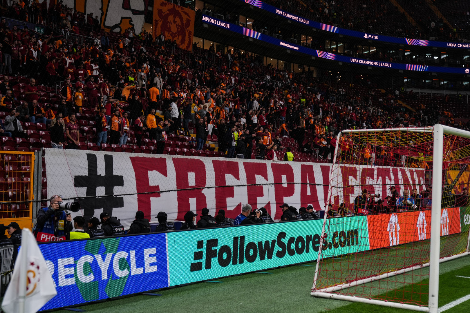 Navijači su, prije i tokom meča, istaknuli više poruka upućenih prema situaciji u Pojasu Gaze i na Zapadnoj obali. Među istaknutim natpisima bili su slogani poput "Free Palestine", poruke koje pozivaju da se "puste palestinska novorođenčad da žive" te oštrije kritike poput - "humanost izgubila savjest u Gazi".