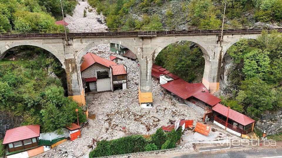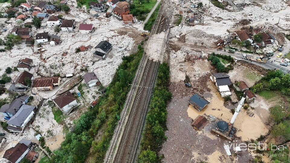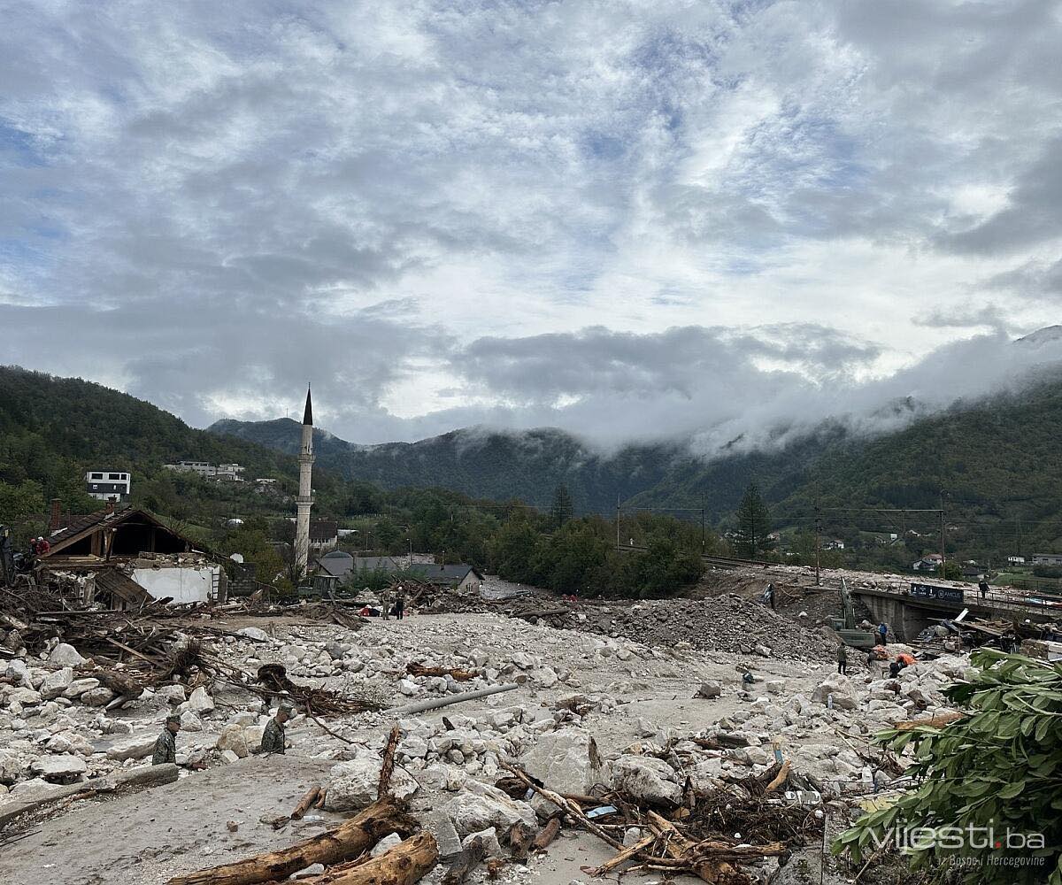 Mjesto događaja je u tim momentima jedna gomila naplavljenog materijala, ruševina od kuća, vozila i teških stijena, širine pedesetak metara i dužine preko kilometar. Pojedine kuće su nestale sa lica mjesta, i ne postoji trag da su tu bile.