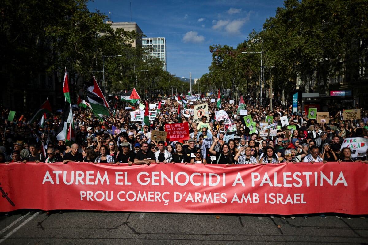Hiljade aktivista u subotu je marširalo kroz centar Barcelone u znak solidarnosti s Gazom, pozivajući na prekid trgovine oružjem i svih odnosa s Izraelom.