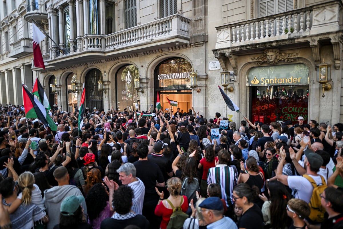 Demonstranti su skandirali "Od rijeke do mora, Palestina će biti slobodna" i "Oslobodite Palestinu", dok su neki aktivisti ispisivali slogane sprejem po trgovinama, restoranima i bankama duž Passeig de Gracia, optužujući ih da su "saučesnici u genocidu".