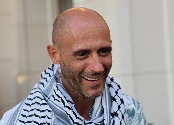 Na snimcima koji kruže društvenim mrežama, vidi se kako Bortolazzi nosi crno-bijelu palestinsku kufiju dok govori o svom iskustvu i novoj vjeri.