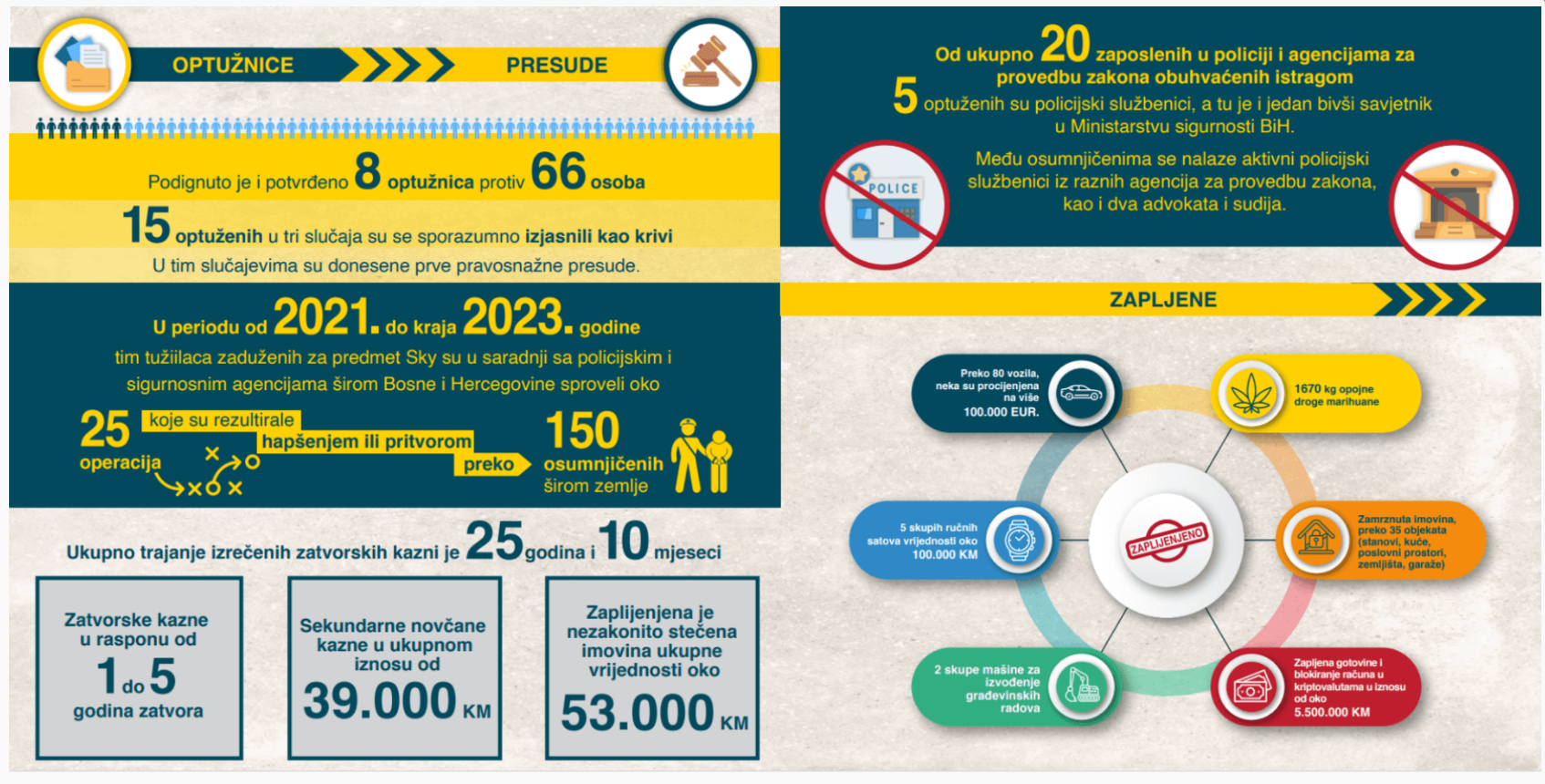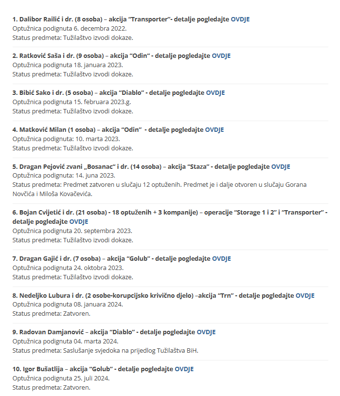 Osvježeni su podaci o ukupnom broju podignutih i potvrđenih optužnica, pravosnažnih presuda na osnovu sporazuma o priznanju krivice, realizovanih operacija, zapljena, kao i drugi bitni podaci, objavilo je Tužilaštvo BiH.
