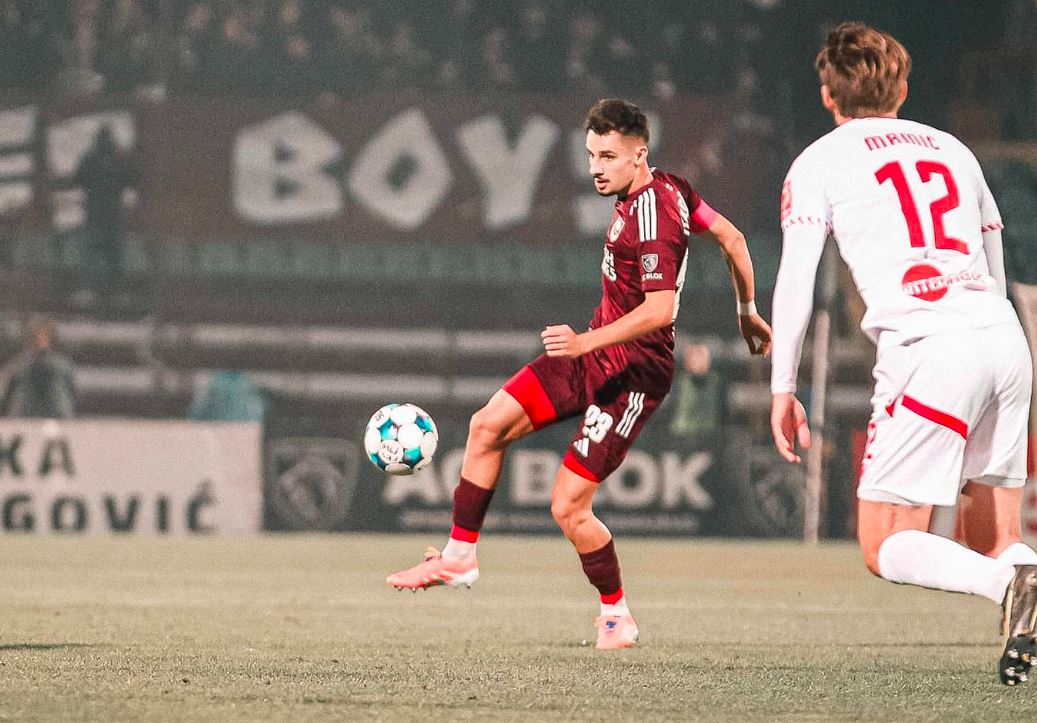 31 - Nova šansa za Bordo klub. Guliashvili centrira iz kornera, a udarac glavom Bralića završava tik pored stative.
