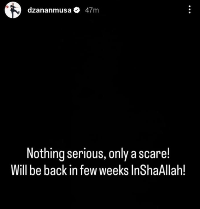 “Ništa ozbiljno, samo je strašno izgledalo. Vratit ću se za nekoliko sedmica. InshaAllah”, napisao je Musa.