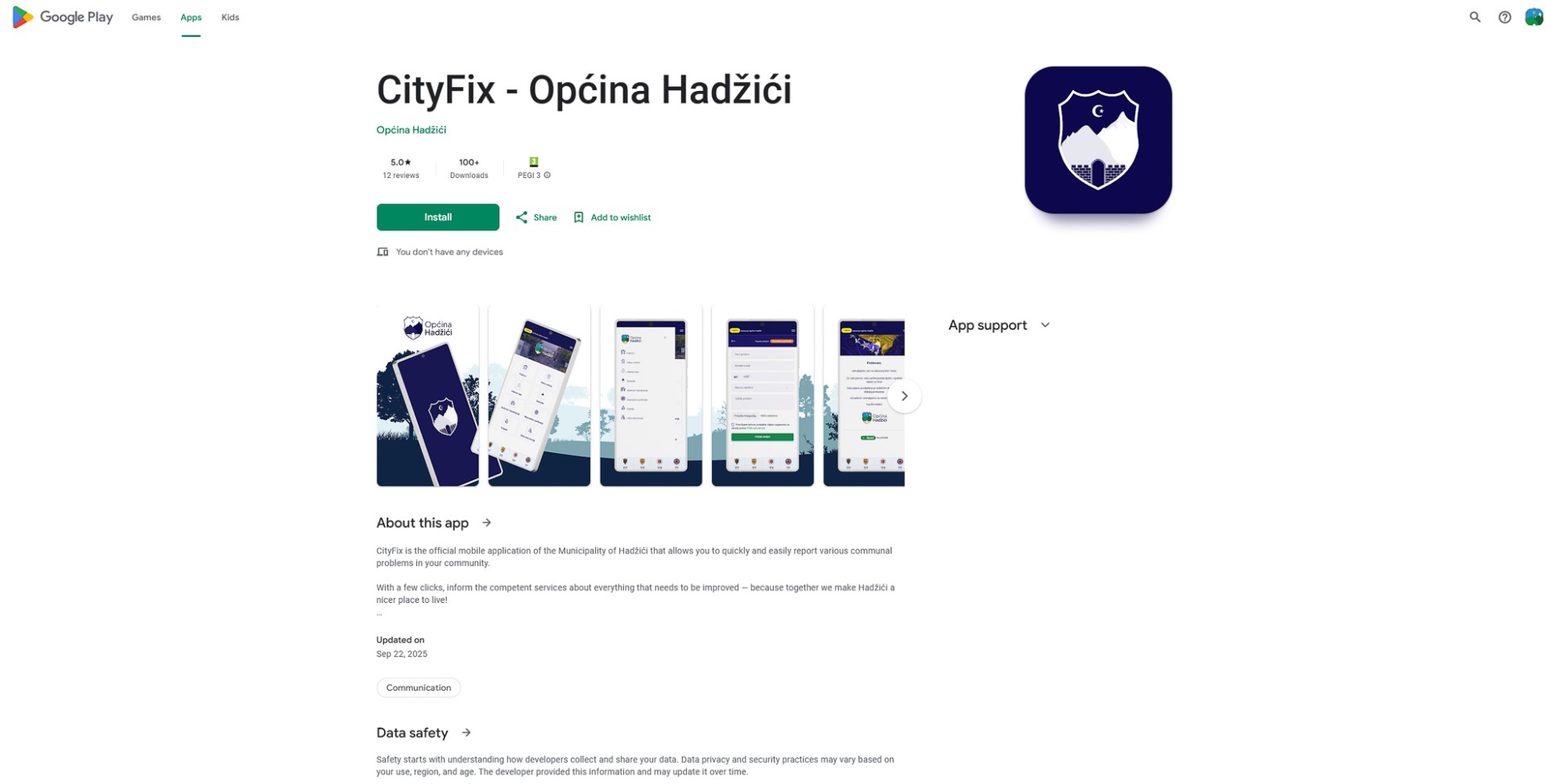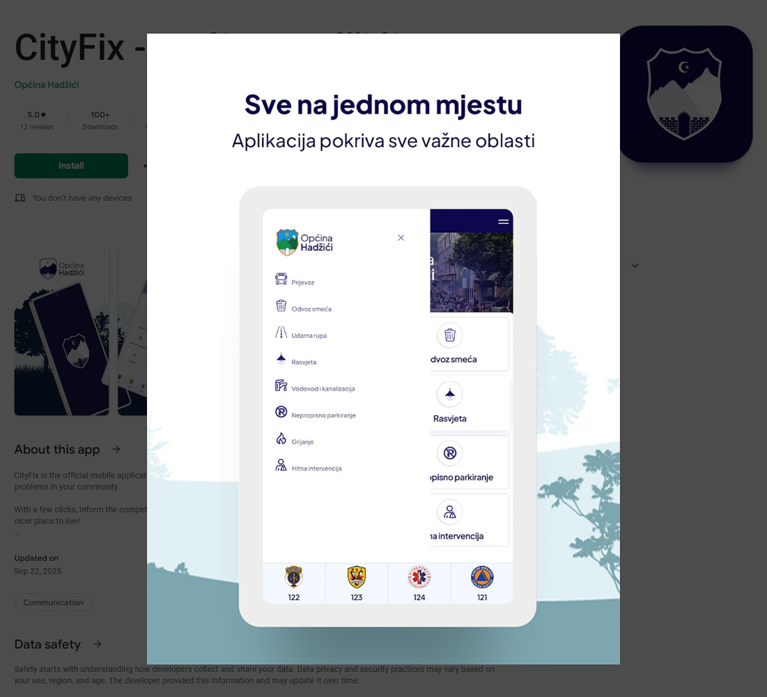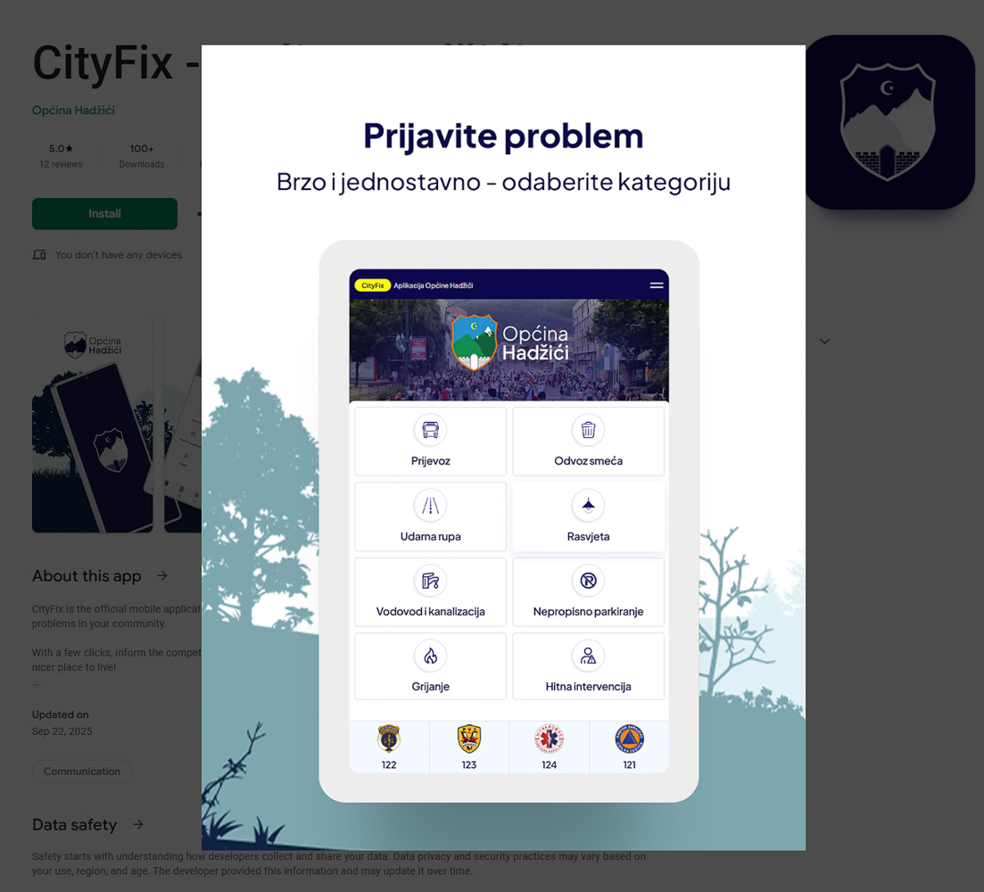 Kroz aplikaciju CityFix Hadžići, građani mogu svakodnevno prijavljivati probleme poput neispravne rasvjete, rupa na putu, nepropisnog parkiranja ili odvoza smeća. Prijave automatski stižu nadležnim općinskim službama, čime se omogućava brže i efikasnije reagovanje.