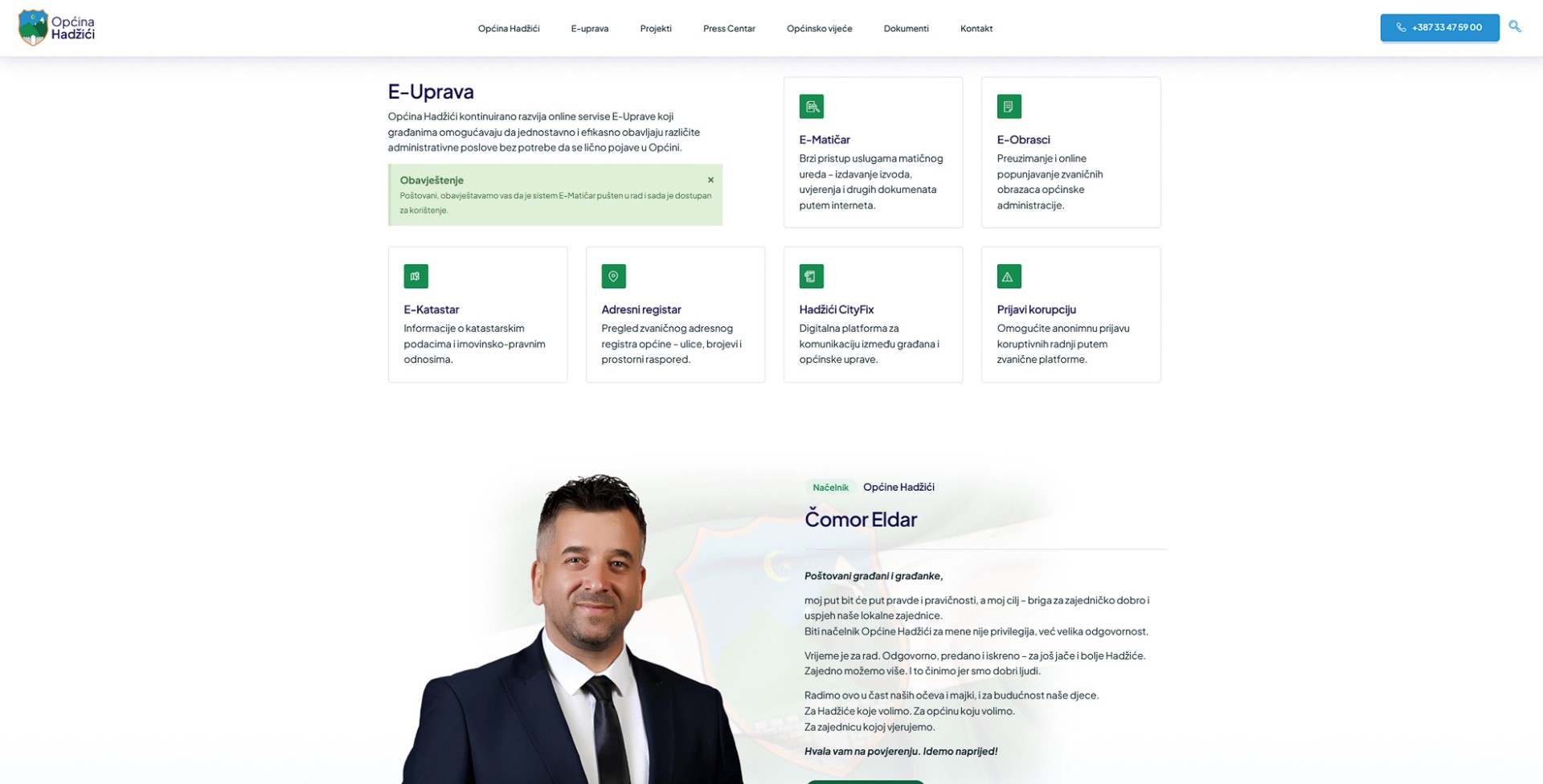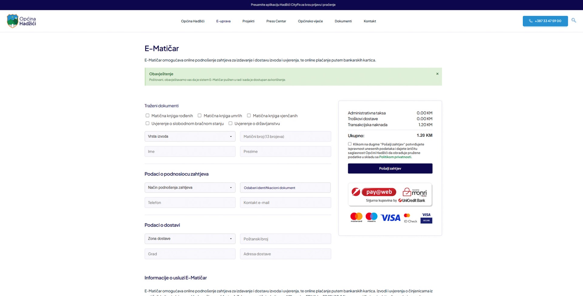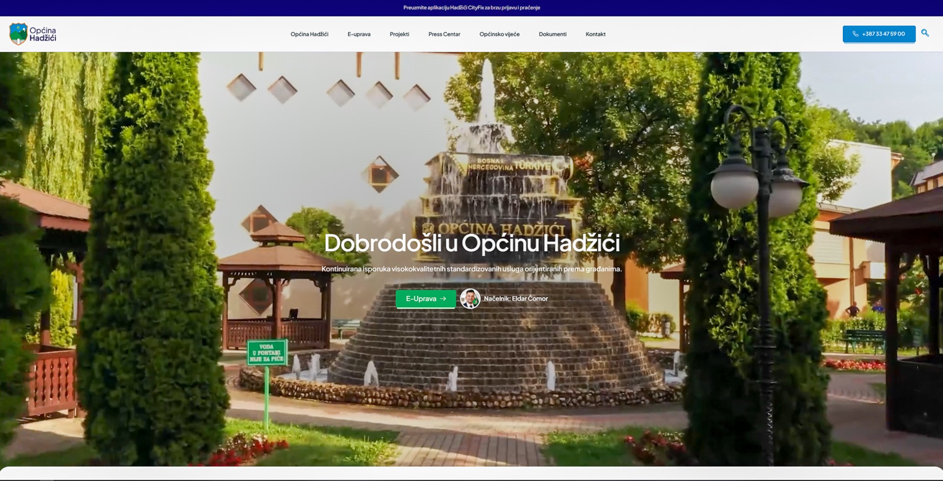Nova web stranica hadzici.ba donosi moderan izgled, pregledan sadržaj i dostupnost za sve korisnike, dok servis e-Matičar omogućava da se izvodi i uvjerenja iz matičnog ureda naruče online, plate karticom i dostave direktno na kućnu adresu, bilo u Bosni i Hercegovini ili inostranstvu.