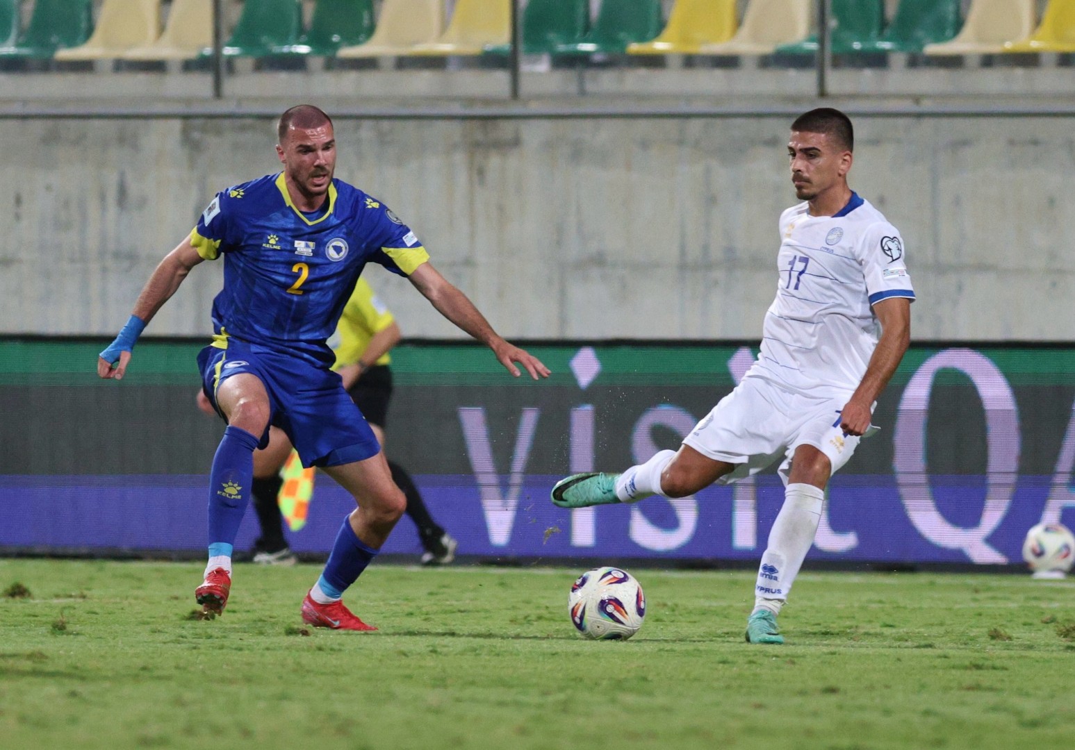 Vodstvo Zmajevima donio je Alajbegovićev slobodnjak u 10. minuti – ubacio je s desne strane, a Katić je iz drugog pokušaja pogodio mrežu i doveo BiH u prednost. Kiprani su u 32. minuti opet prijetili, ali je Pittas ponovo promašio izglednu šansu.