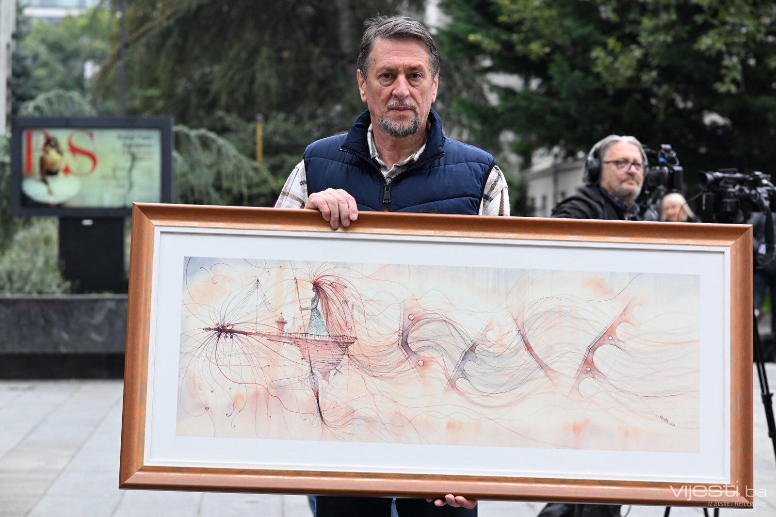 Komemoracija Halidu Bešliću: Jezeimir Milošević, slika nastala po motivu Miljacke