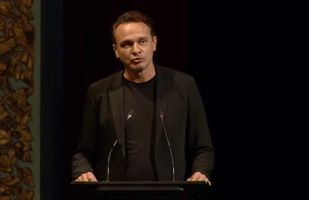 12.20 Dino Merlin održao najemotivniji govor na komemoraciji, koji je izazvao rijeke suza u sali Narodnog pozorišta.