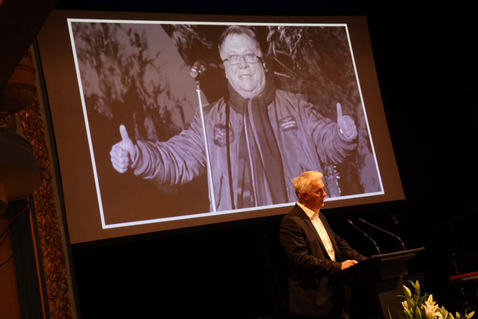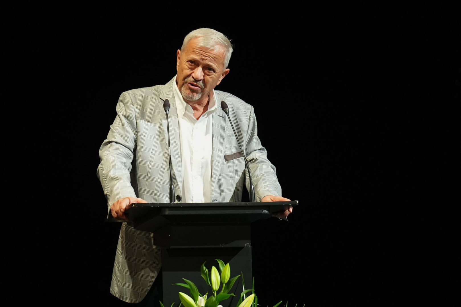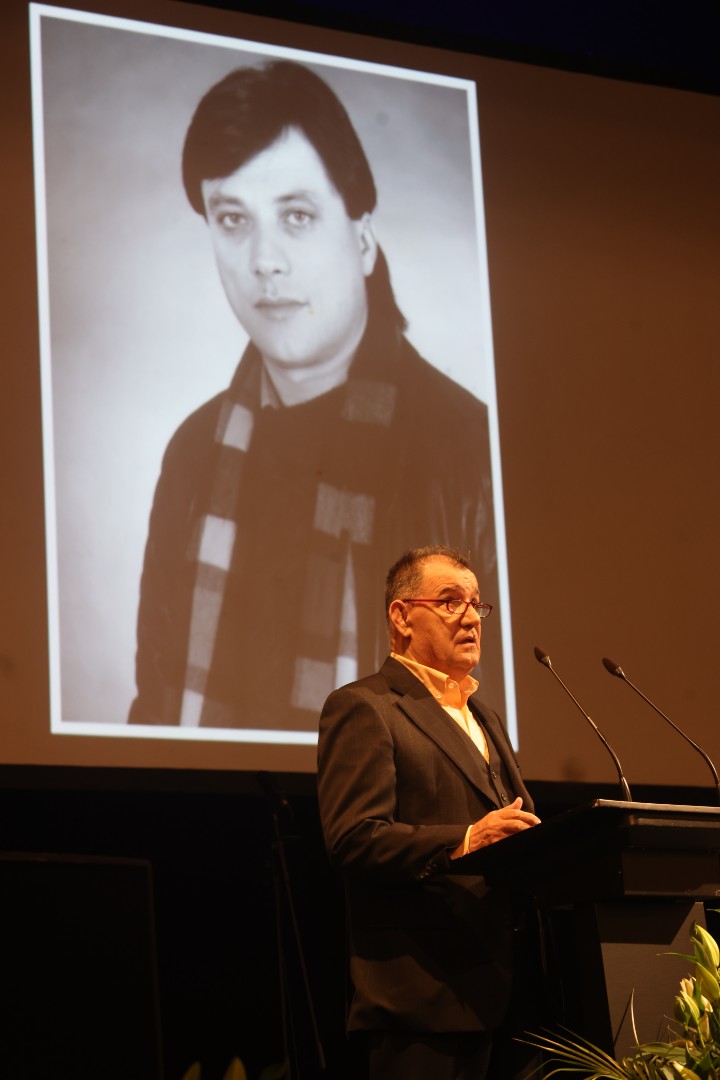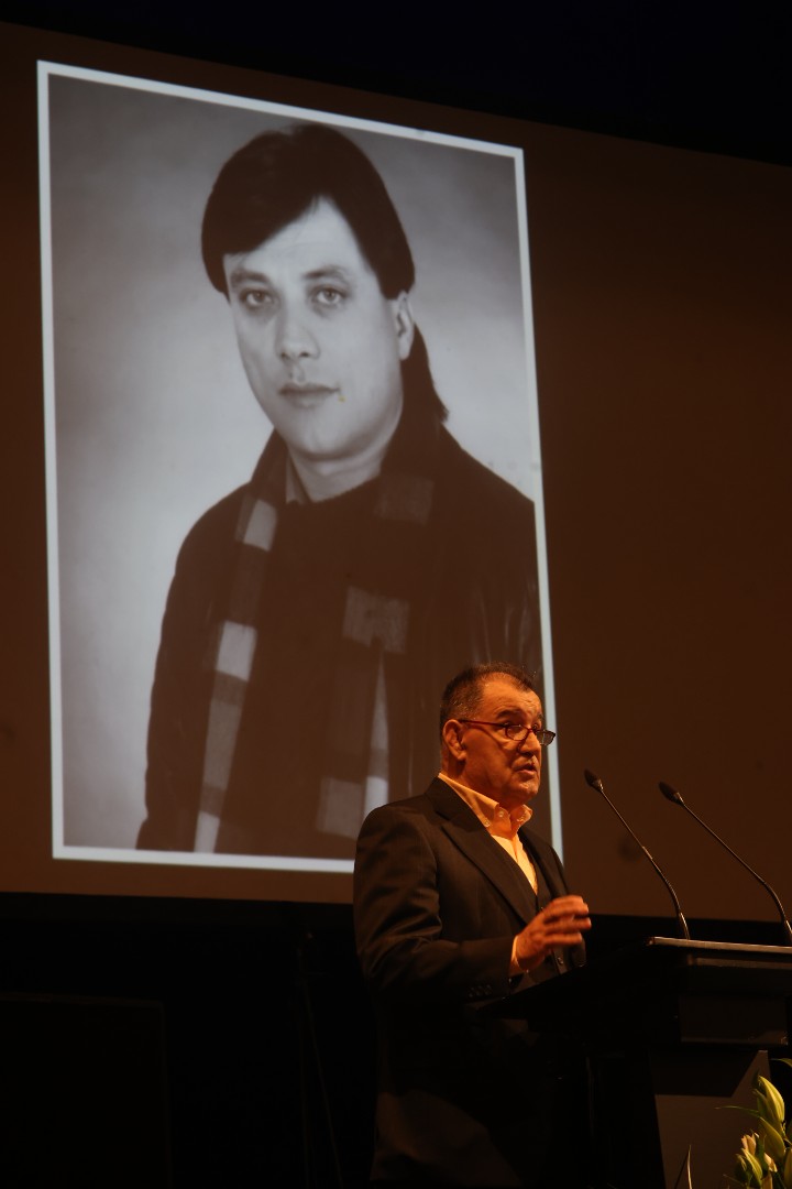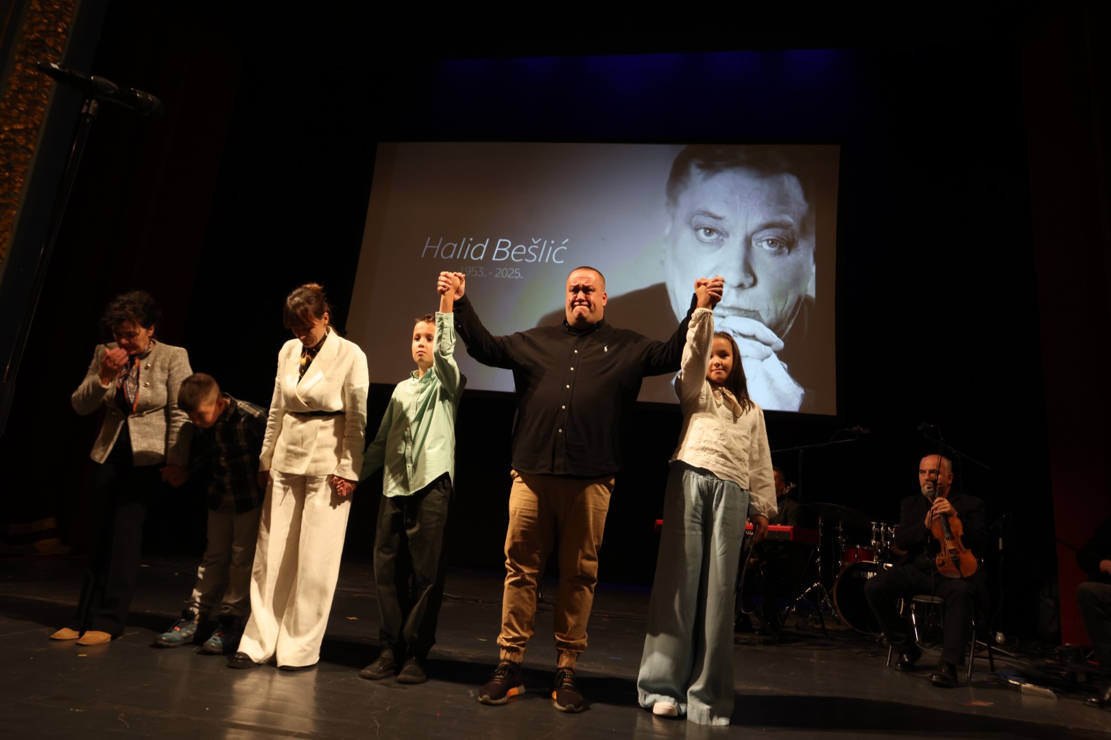 Glumac Enis Bešlagić izazvao je snažan aplauz kada je govorio o zajedničkoj akciji u Halidovu čast, kojom su se ljudi širom regije i dijaspore spontano okupili i pjevali njegove pjesme.