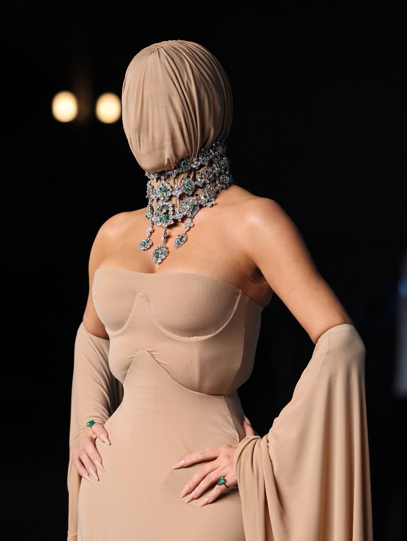 44-godišnja reality zvijezda i poduzetnica pojavila se na svečanoj Gala večeri Akademijskog muzeja 2025. u Los Angelesu noseći masku koja joj je u potpunosti prekrivala lice.