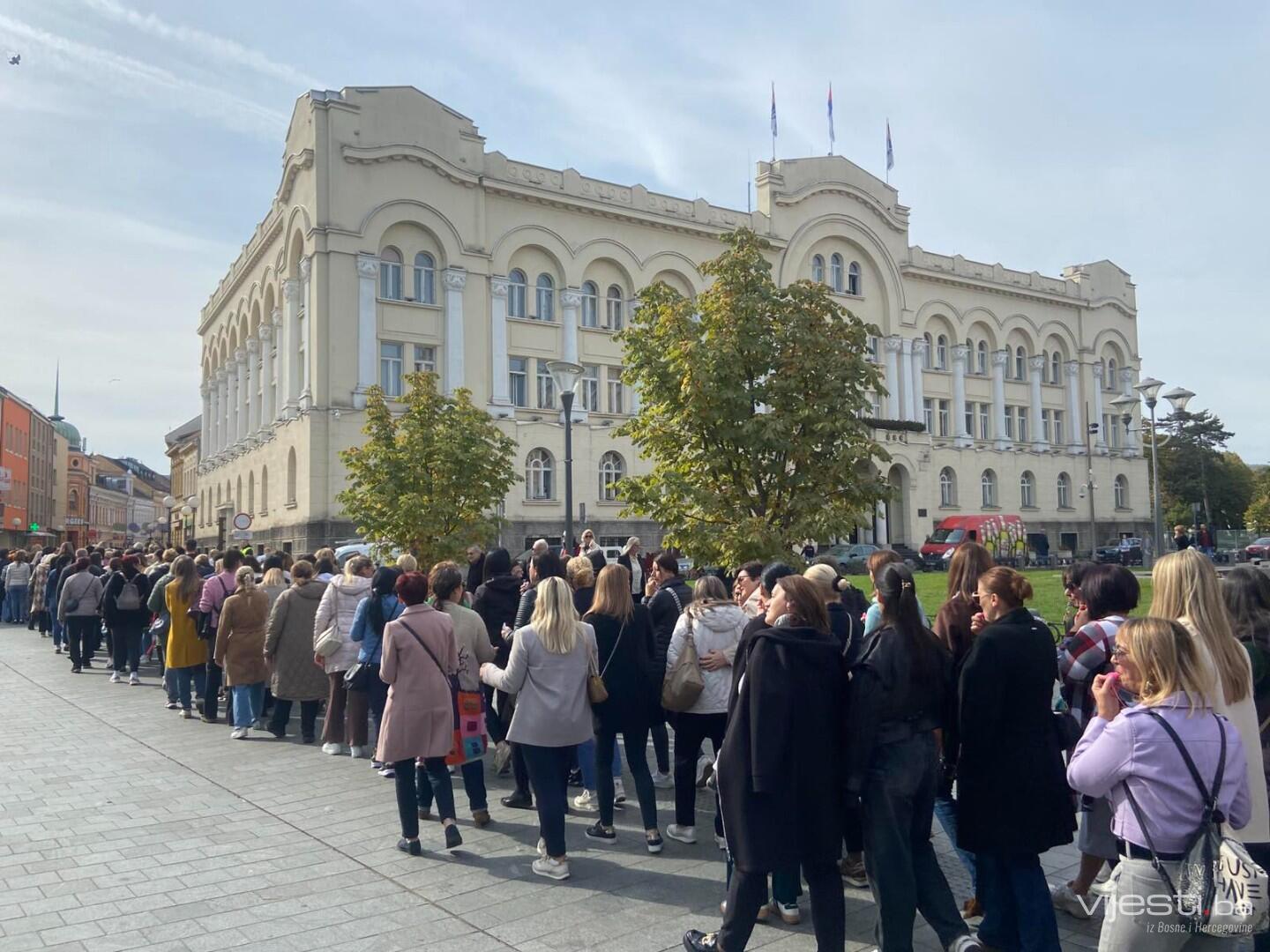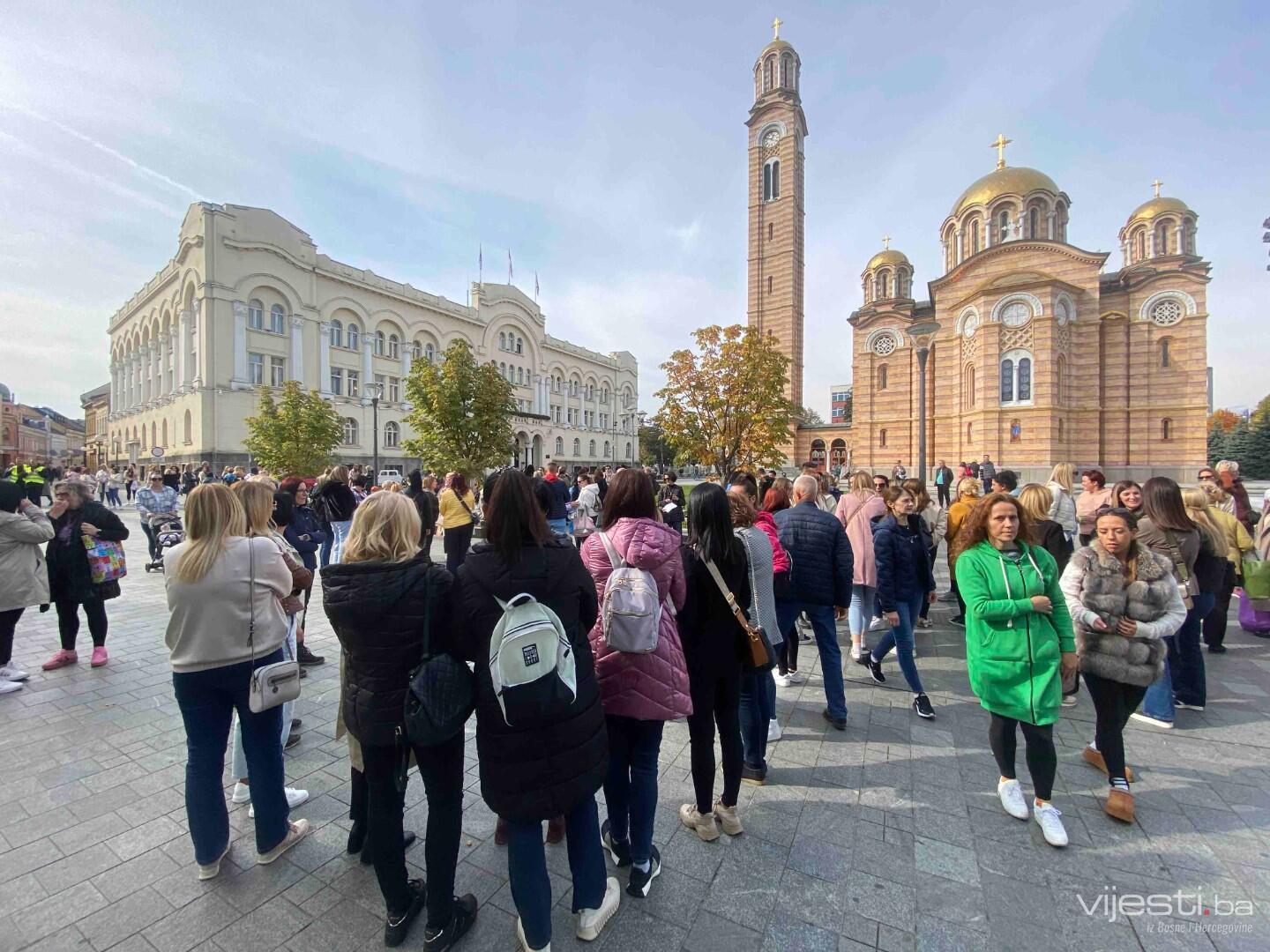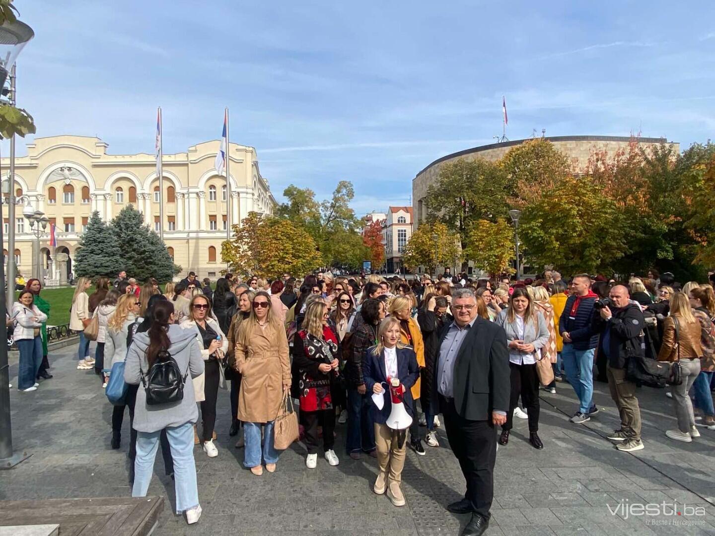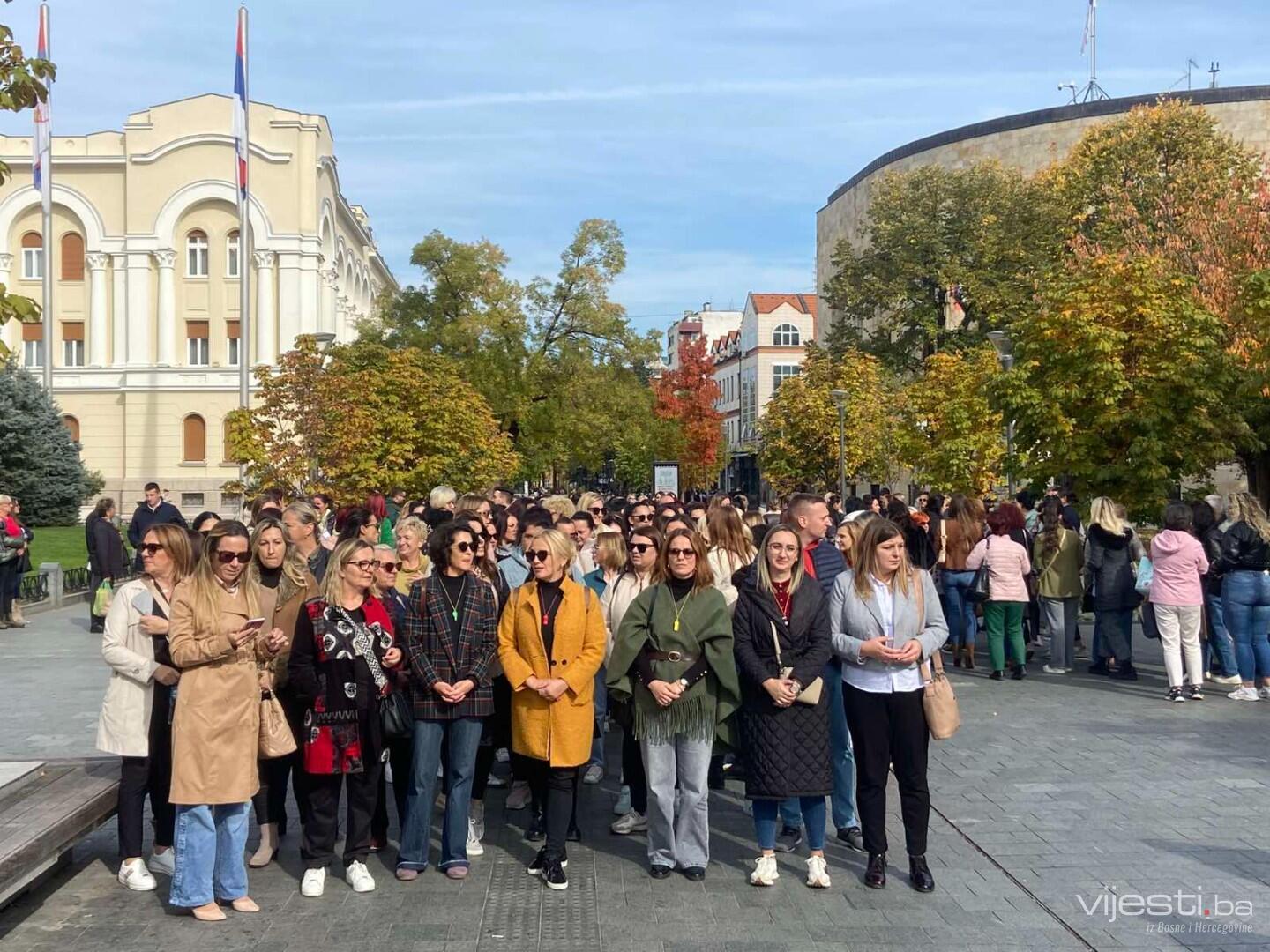 Više stotina ljudi okupilo se danas na protestu zaposlenih u banjalučkim vrtićima u 13.00 sati u parku kod Hrama Hrista Spasitelja u Banjaluci, zahtijevajući potpisivanje kolektivnog ugovora, povećanje plata za 20% i uvođenje prednosti pri upisu djece zaposlenih u vrtiće.