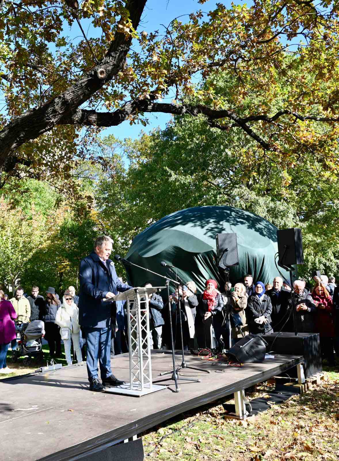 U obraćanju prisutnima predsjedavajući PBiH Komšić istakao je da je Trg Ujedinjenih nacija najprikladnije mjesto za spomenik žrtvama genocida u Srebrenici, i da je obaveza svih čuvati sjećanje na žrtve i da ne dozvoliti da se takvi zločini ikada ponove.