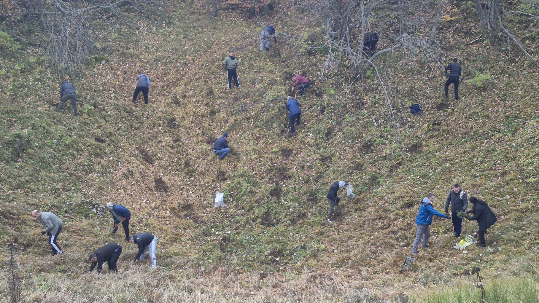 U prelijepom okruženju, sa crveno-žutim bojama jeseni, uz čist zrak koji je čistio pluća, a šale, dobacivanja i smijeh ispunjavale dušu, brzo se došlo do cilja – posađenih 1.200 sadnica smrče.