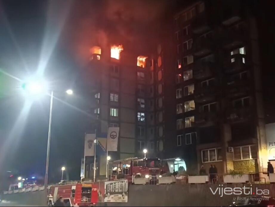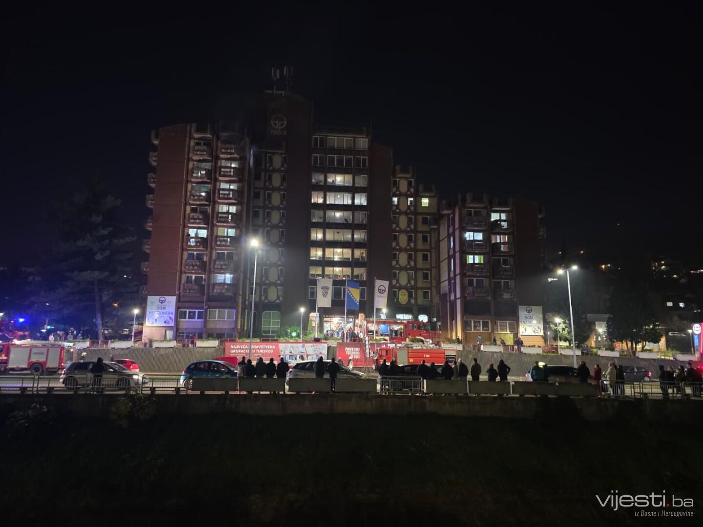 Dramatični prizori stižu večeras iz tuzlanskog Doma penzionera, gdje je mešto prije 21 sat izbio veliki požar na jednom od viših spratova zgrade.
