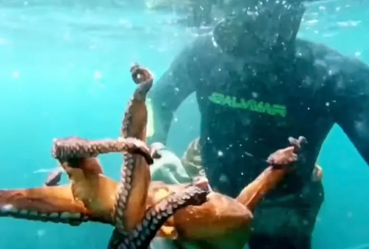 Nakon sati provedenih u vodi, Salem izranja sa sretnim ulovom: nekoliko riba i hobotnica kako bi prehranio porodicu i prodao na tržnici.
