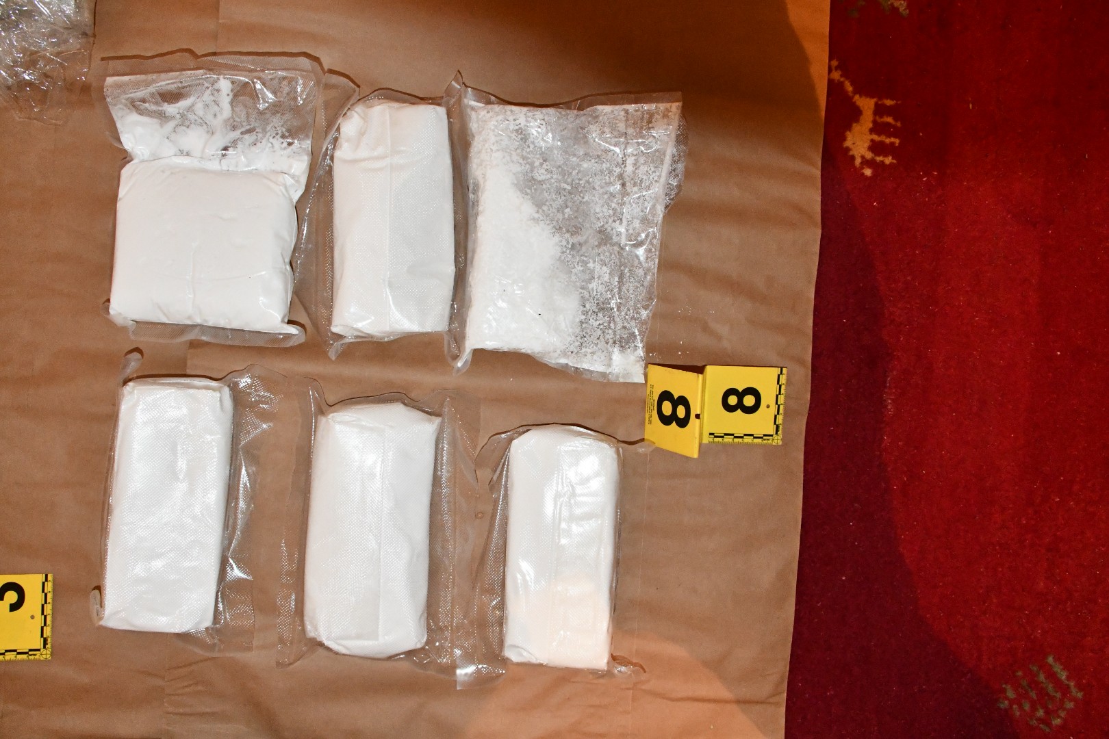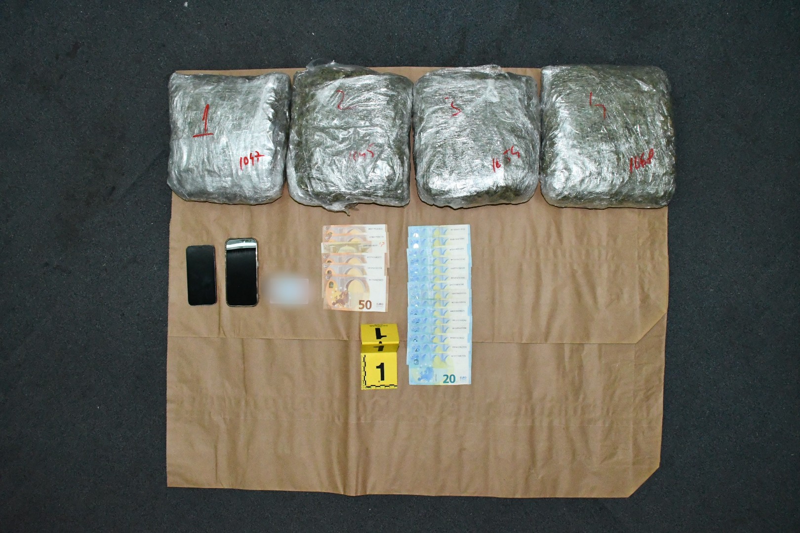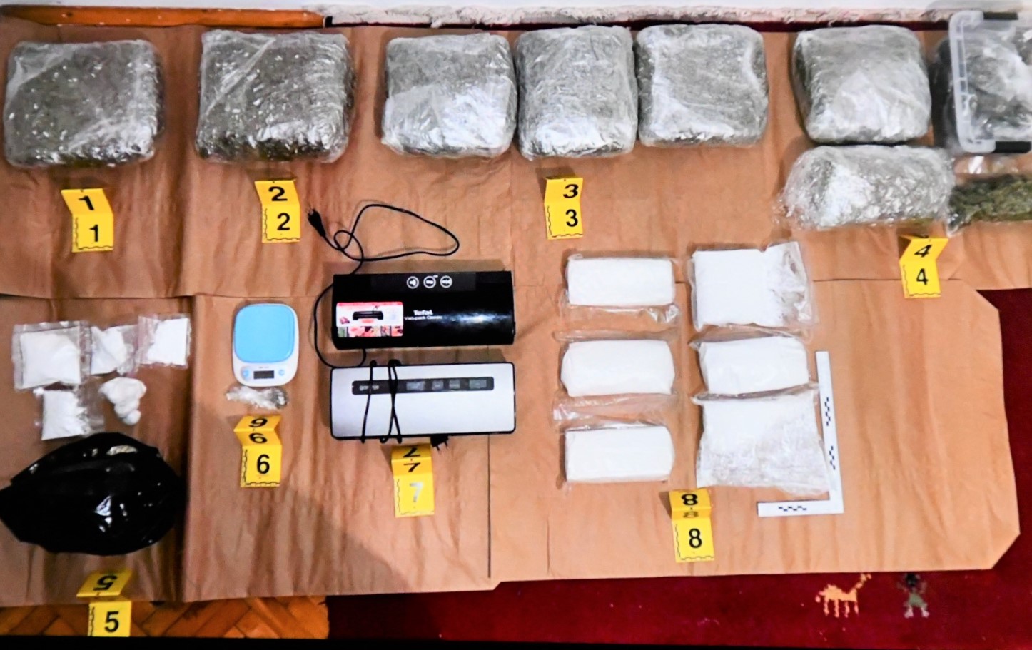 U izvršenim pretresima na području Novog Sarajeva i Starog Grada, pronađeno je više različitih pakovanja različitih materija koje asociraju na opojne droge kokain, speed i marihuana, ukupne količine cca 38,8 kilograma, određena količina gotovog novca, osam mobilnih telefona, inozemni lični dokumenti za koje postoji osnov sumnje da su krivotvoreni, te brojni drugi predmeti od interesa za istragu.
