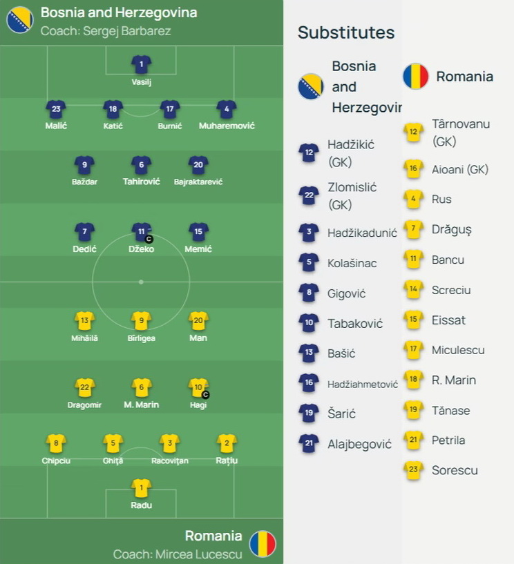 UŽIVO: BiH - Rumunija 1:1, Džeko pogodio, Rumuni sa igračem manje do kraja!