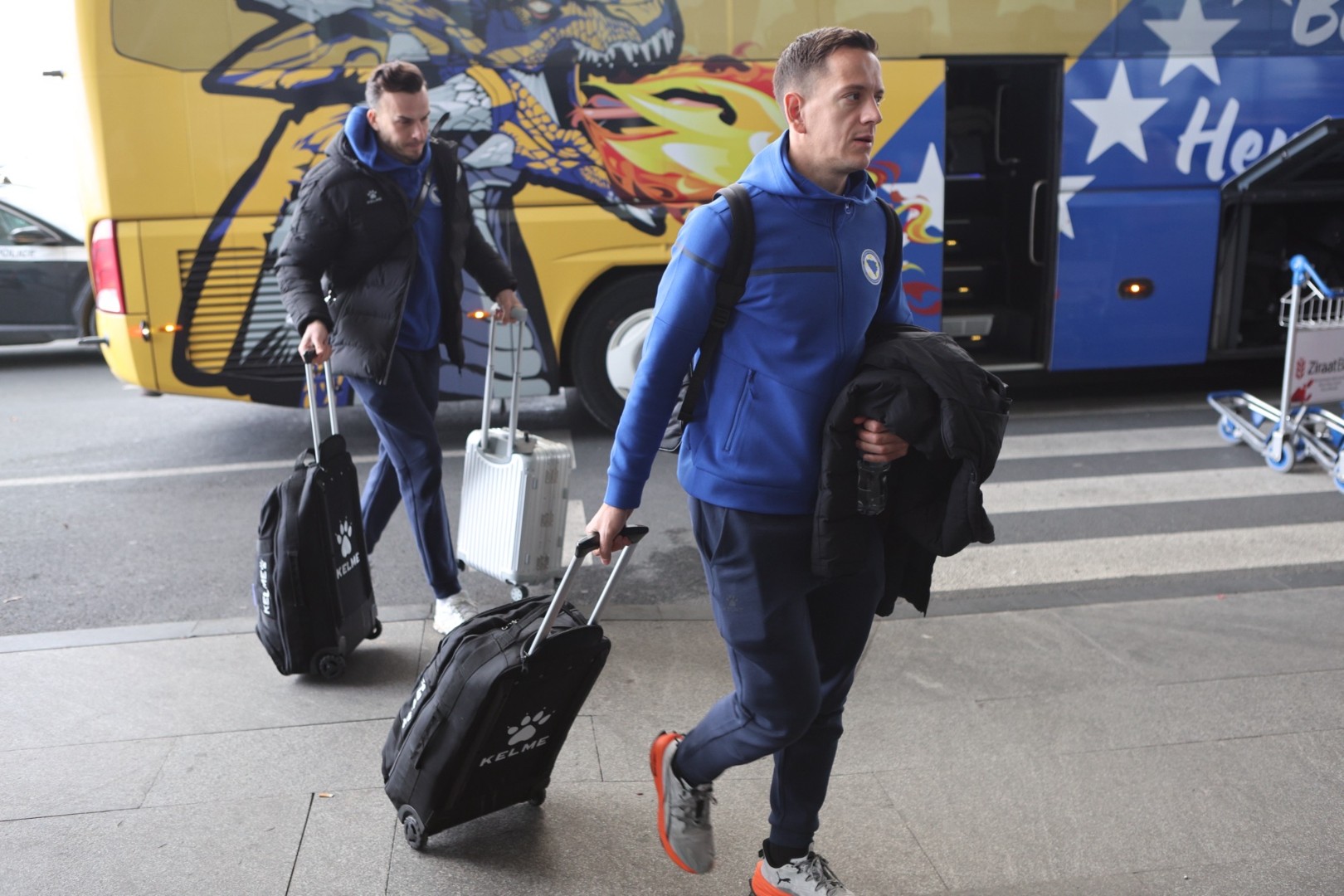 Nogometna reprezentacija Bosne i Hercegovine putuje danas sa sarajevskog aerodroma u Beč, gdje će sutra odigrati posljednji meč kvalifikacija za Svjetsko prvenstvo protiv selekcije Austrije.