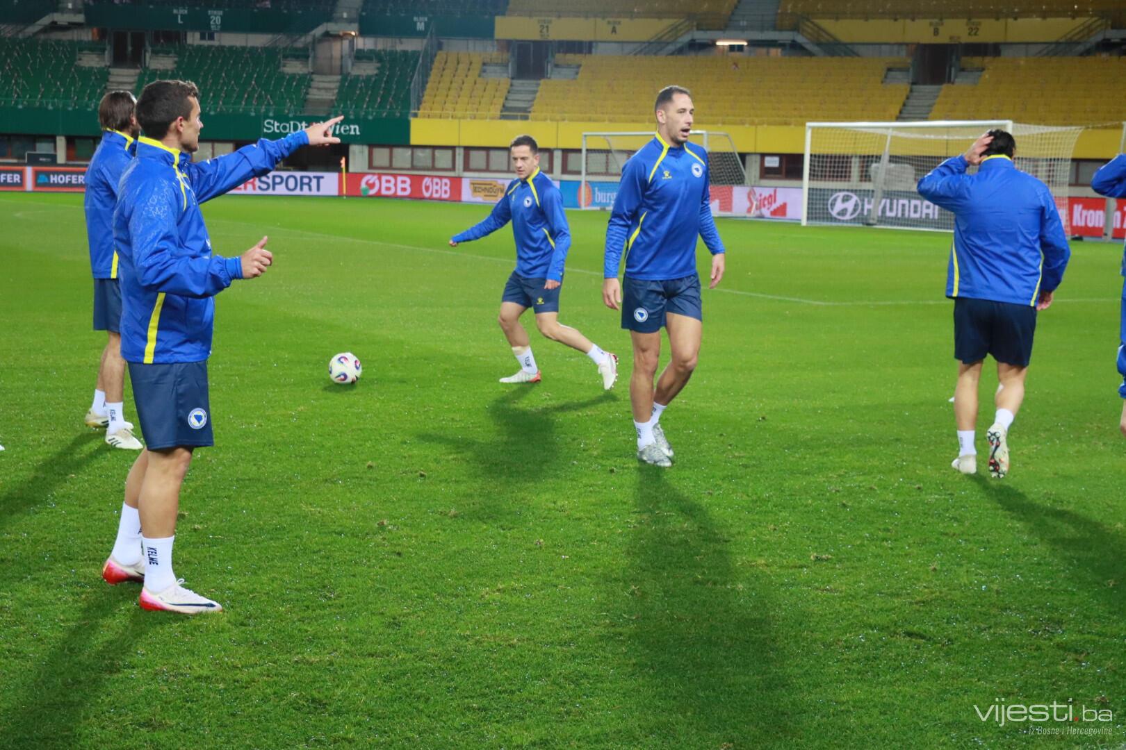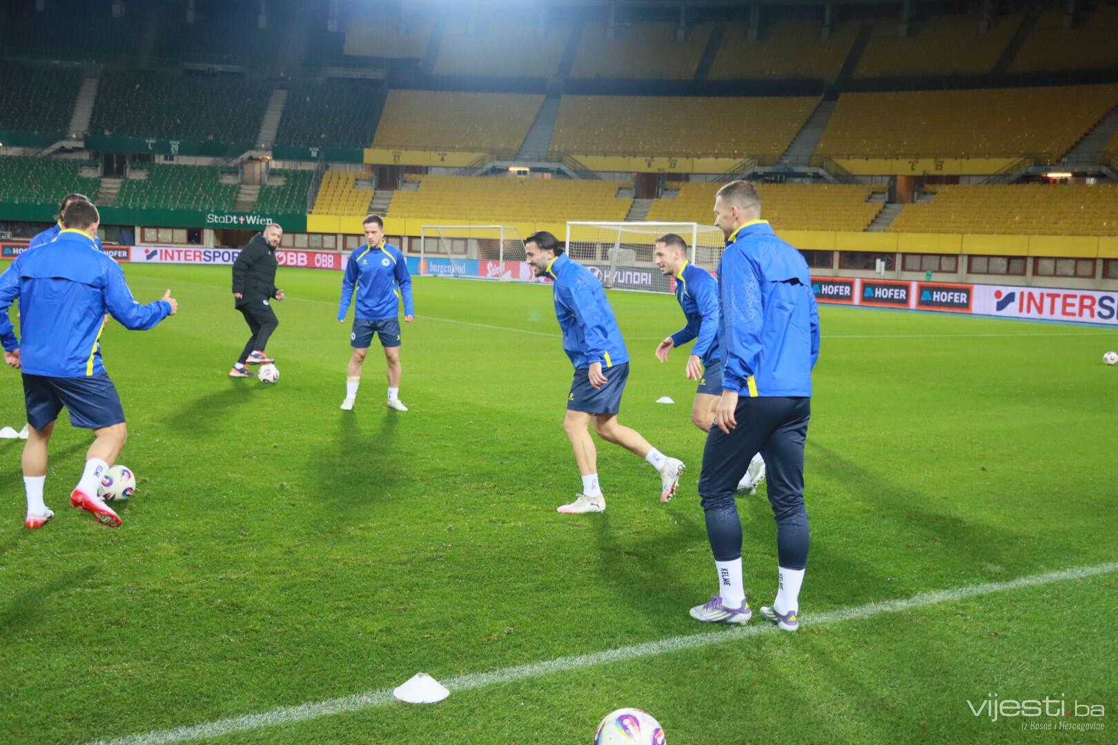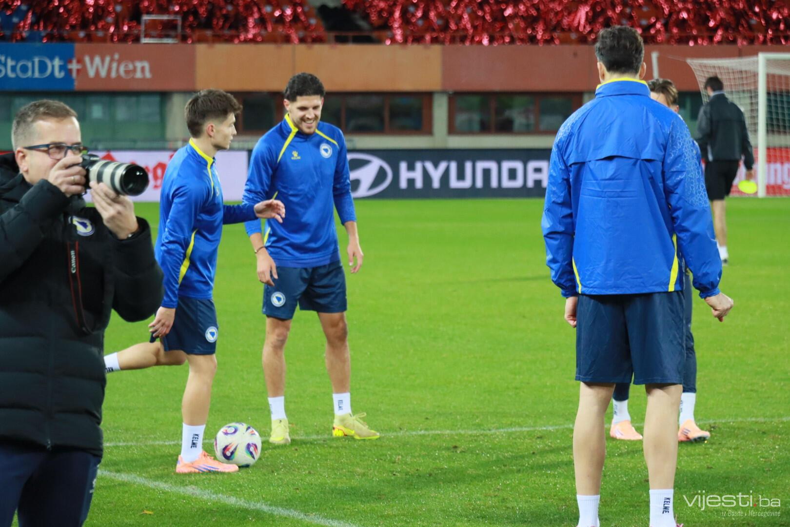 Reprezentativci Bosne i Hercegovine odradili su večeras posljednji službeni trening na Ernst Happel stadionu u Beču uoči utakmice kvalifikacija za Svjetsko prvenstvo s Austrijom, javio je reporter Vijesti.ba sa stadiona "Ernst Happel".